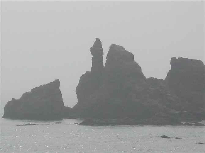 當(dāng)天晚上我們坐船進(jìn)了長(zhǎng)島,住在長(zhǎng)島漁家樂(lè)里。第二天游覽了長(zhǎng)島的三個(gè)旅游景區(qū):九丈崖、月牙灣、望夫礁。