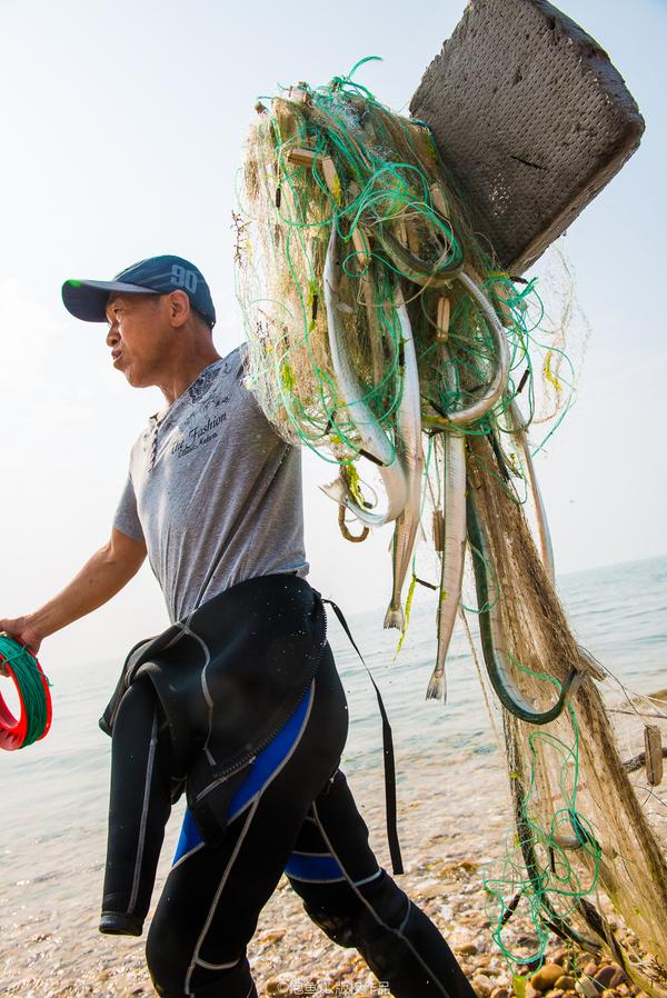 ↗ 到長島必定要去長山尾——因?yàn)檫@里是黃海與渤海交匯的地方。 長山尾顧名思義就是長島的尾巴。 我們來到這里時(shí),家在北京的司先生和他的同伴剛從海里釣魚上岸。我詫異于他們竟然會(huì)從北京跑到長島這么遠(yuǎn)來釣魚。一問,司先生因?yàn)橄矚g這里無污染的環(huán)境, 在長島買了房, 專門用來度假休閑。