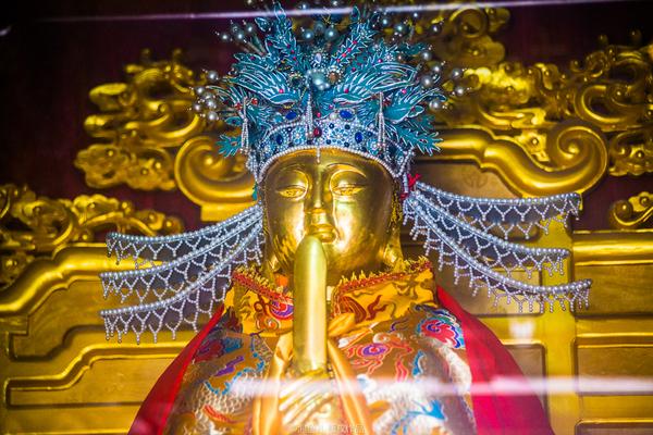 ↗ 媽祖,也稱為海神娘娘,主要是以中國福建、臺(tái)灣等東南沿海為中心的海神信仰,以長島媽祖為代表的中國北方媽祖在世界媽祖文化中占有極重要地位。在后宮殿正位神臺(tái)有銅鑄鍍金天后圣母像一尊及一面兩米高的九花青銅穿衣鏡,各種服飾用品及床帳、擺設(shè)應(yīng)有盡有。