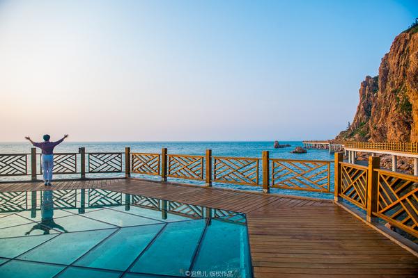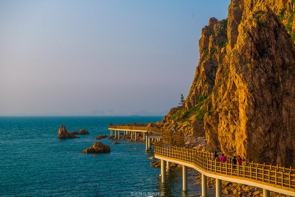 ↗ 棧道一端從黃海與渤海分界線為起點(diǎn),沿山海交界處架空前行,全程除了少數(shù)下到海邊和上到烽山的出口之外,幾乎都是平坦的海濱棧道。 棧道依山傍海,觀景聽風(fēng),極為舒暢。
