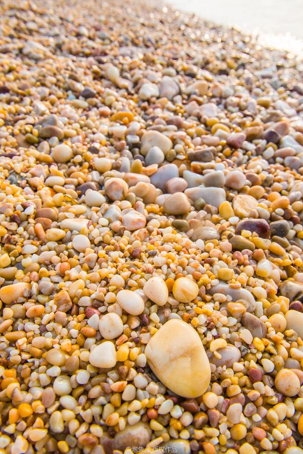 ↗ “我攜此石歸,袖中有東海,臵之盆盎中,日與山海對(duì)”, 宋代大學(xué)士蘇東坡對(duì)長島美石情有獨(dú)衷, 并題《北海十二石記》贊美月牙灣美石“五彩斑斕或作金色,皆秀色粲然”。 據(jù)說,這些溫潤如玉的卵石,主要是由于海水日復(fù)一日的沖刷和自然風(fēng)化而成。 奇特的是,即使是炎熱的中午,這些柔美的卵石溫度也不會(huì)很高,赤著雙腳踩在上面,反而有種絲絲的清涼,那種感覺真的是好美妙。