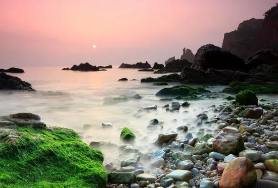 古人心中的神山,片石皆與眾不同。長島巖如玉,沙如珠,岸灘球石,如珠璣裝點著迤邐的海岸。珠圓玉潤,色彩絢爛,圖案奇幻……有人說,滄海月明珠有淚,溫婉美石系鮫人泣珠而成。眼淚哪有那么多色彩,那是一灣碧水的造就,日月經(jīng)年的鑲嵌。