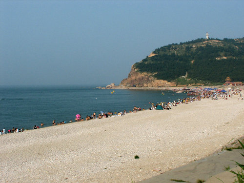 安頓下來之后,馬上前往月牙灣。月牙灣位于北長山島最北端,俗稱半月灣,因灣形似半月而得名。它背依青山綠野,環(huán)抱碧海清波,一襲銀白球石的遙遙長灘,鑲嵌在青山碧水之間,猶如深邃夜空中的一彎新月。月牙海灘為全國罕見的礫石灘。海灘球石是由于地殼運動地表隆起后造成附近山巒的巖石脫落,石塊置身于弧形的海灘,經(jīng)過海浪無休止的沖刷磨礪而逐漸變圓形成球石。因石英巖中夾雜了鐵、錳、鋅等雜質(zhì),因而呈現(xiàn)出各種顏色。