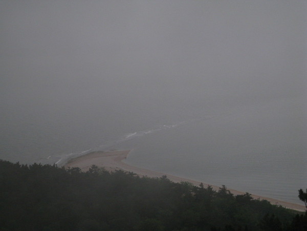 一路盤山而上,來(lái)到黃渤海分界碑處,邊上有風(fēng)力發(fā)電風(fēng)車,發(fā)出呼呼地聲音,遠(yuǎn)眺,霧氣太重,看黃渤海分界線不清晰,嗨,天公不做美,看來(lái)長(zhǎng)島的全景也看不成了,只有下次來(lái)再看了。
