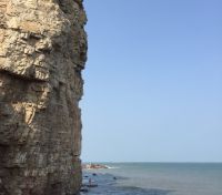 。????九丈崖真是個美麗的地方,如果我沒掉向的話崖的東面是鵝卵石的海灘,叫做鷗翅灣,西面則是形態(tài)各異的礁石。有人說長島的海灘全是鵝卵石不好,如果單單從游泳來說他