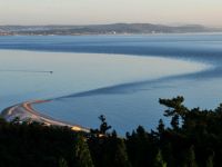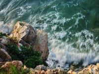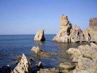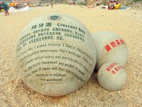 月牙灣懷抱的一泓碧水,藍(lán)得象瑪瑙,清的似明鏡,誘人不由得跳進(jìn)去,把大海攬入自己的懷里。風(fēng)高浪急時(shí),滿灣翡翠,銀雪飄飄;晴空萬(wàn)里時(shí),安逸俊美,嫵媚可人。千百年來(lái),大海以美的心靈、美的纖手磨飾出這岸邊的萬(wàn)斛珠璣。