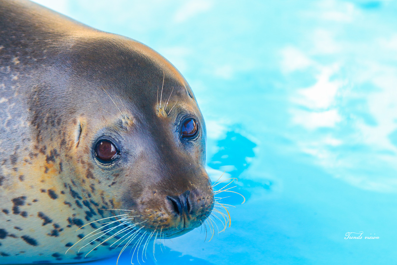 圈養(yǎng)的海豹眼神是這么的憂郁,滿臉透出來的不快樂。