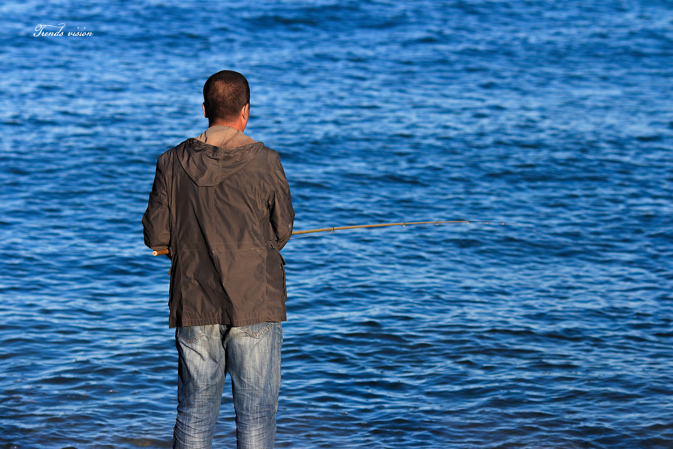 下圖到了時間 老人開始收魚,慢慢的將魚繩收回。