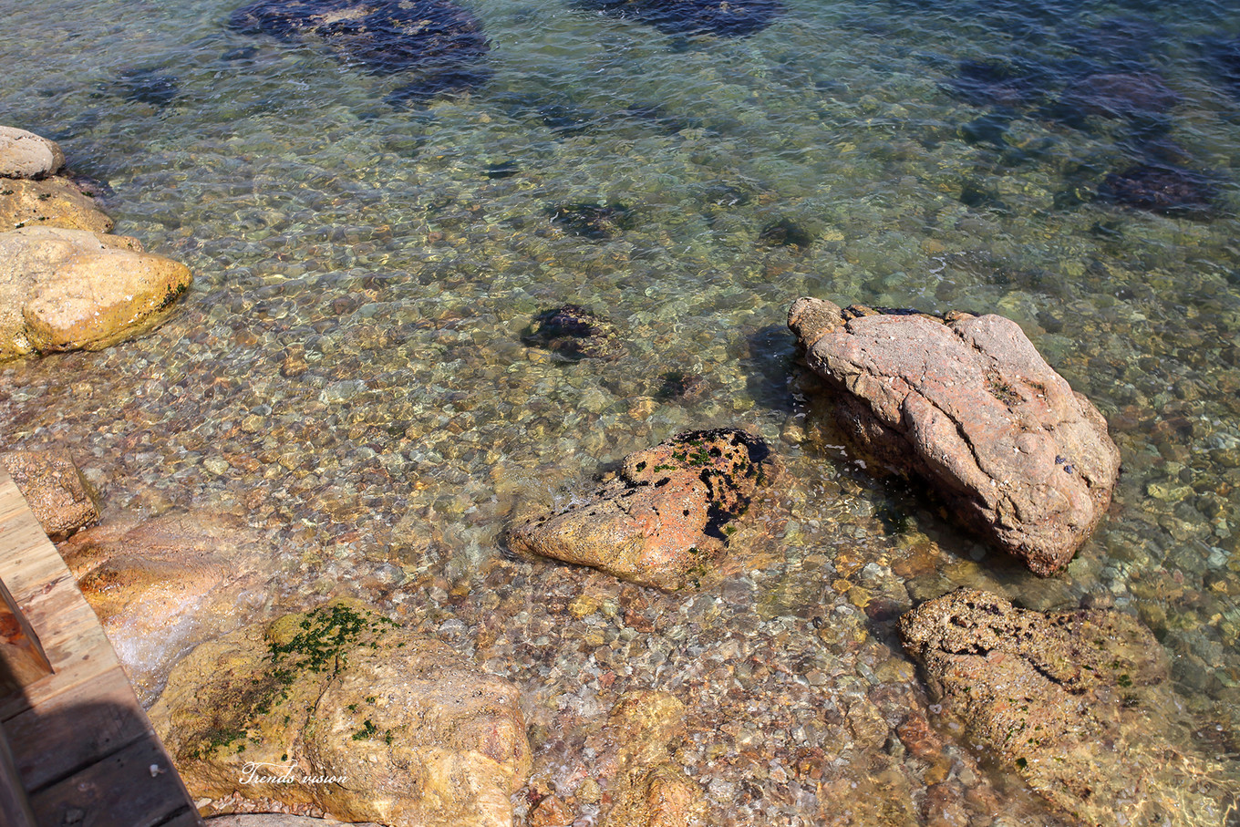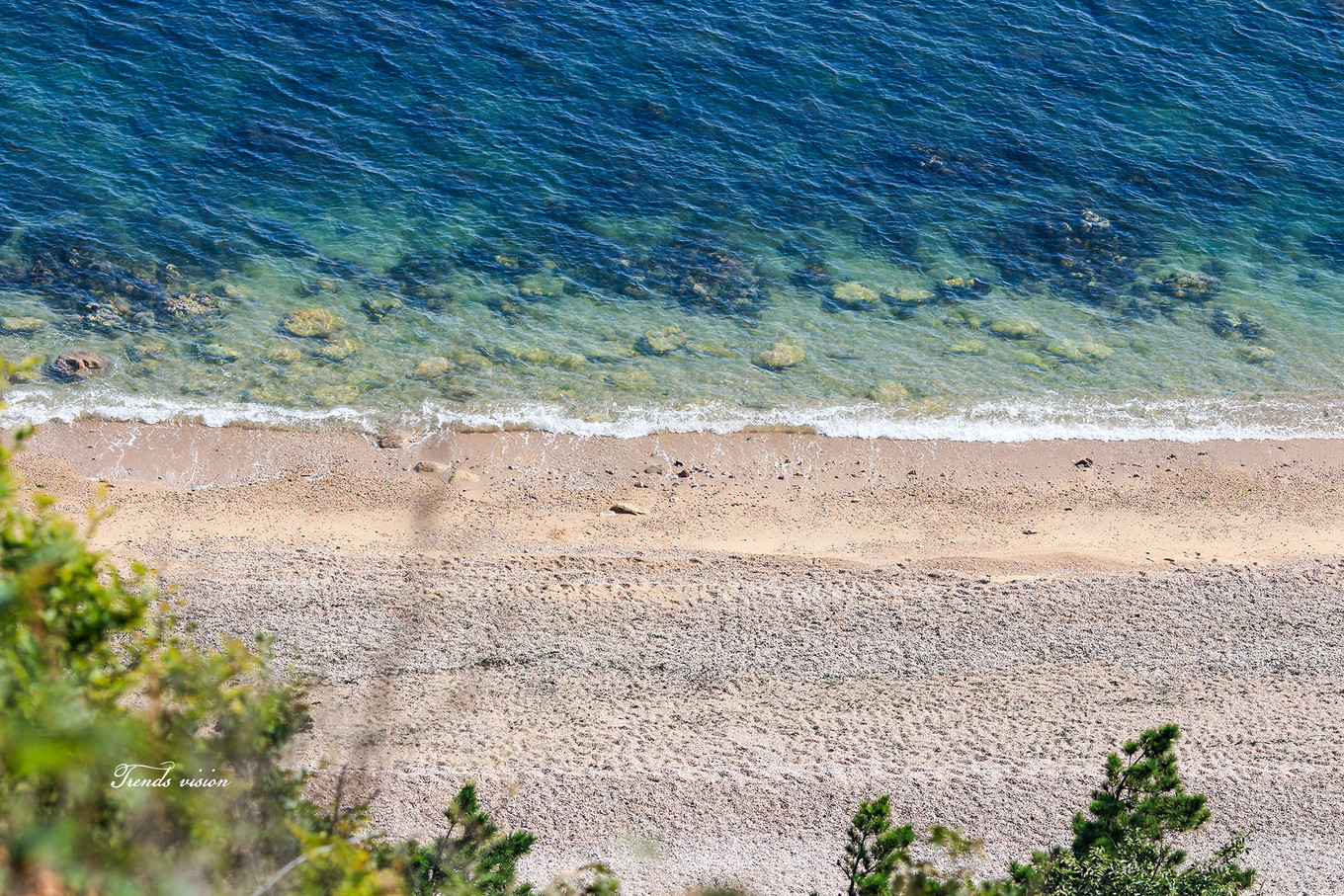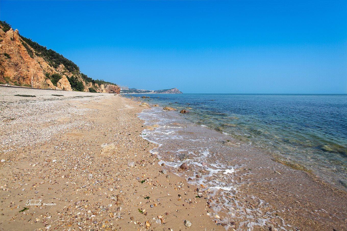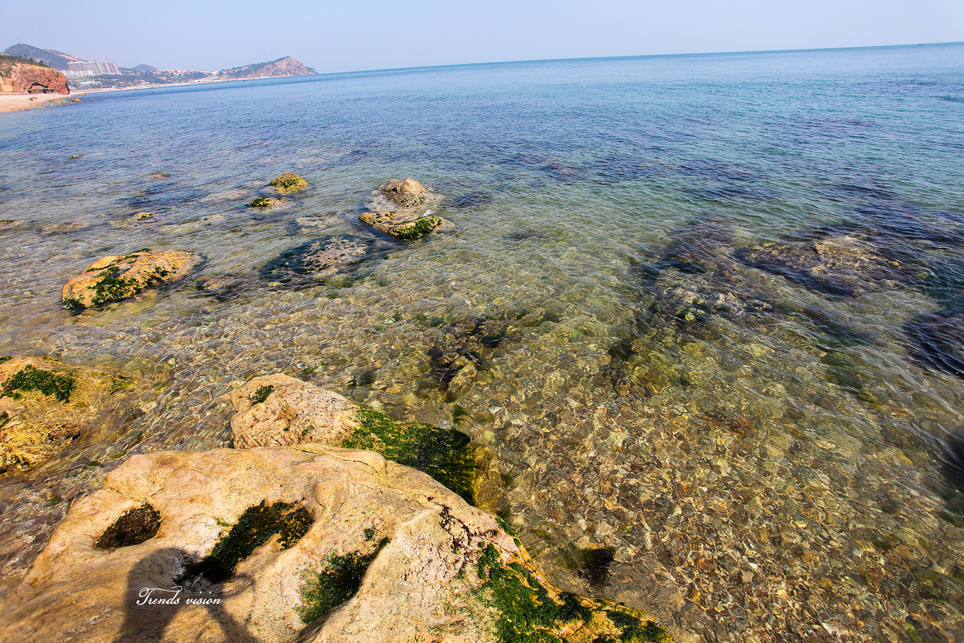 下圖黃渤海交際線附近也有一個球石海灘,這里的水質更加的清澈,一眼見底。
