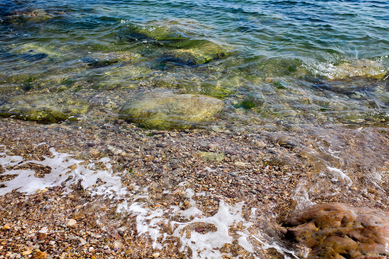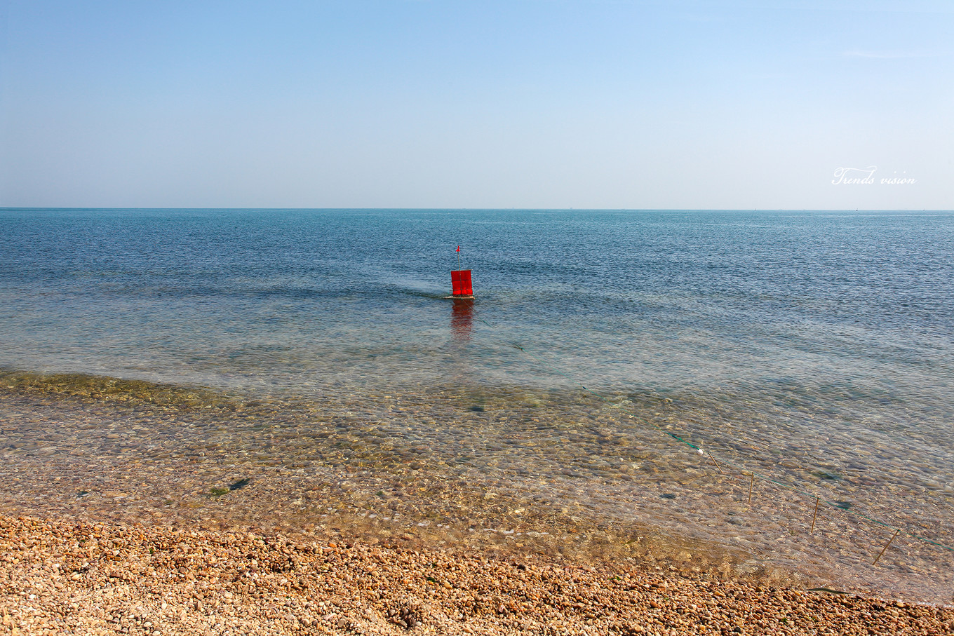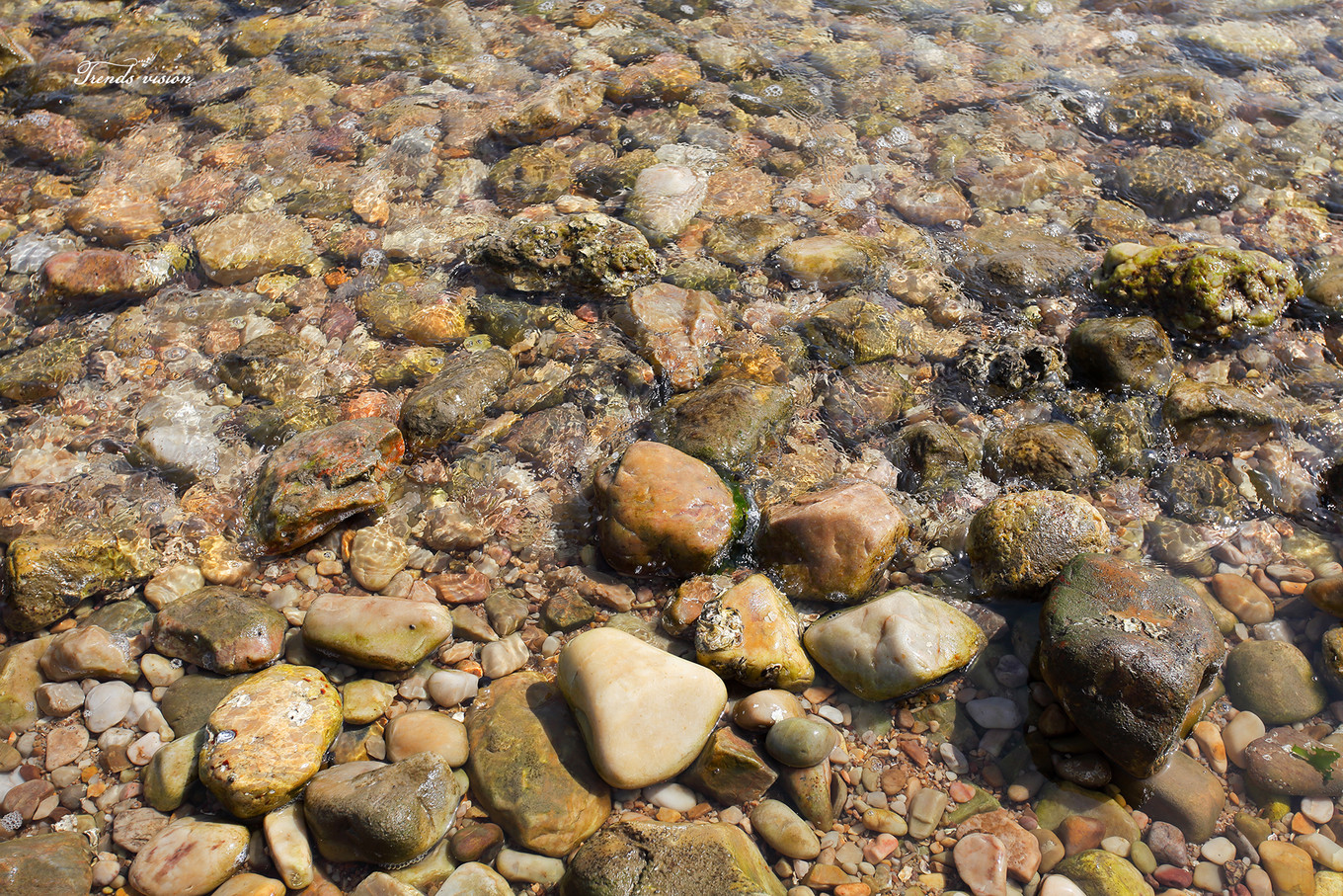 下圖黃渤海交際線附近也有一個球石海灘,這里的水質更加的清澈,一眼見底。