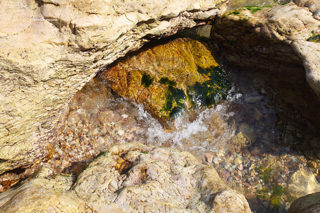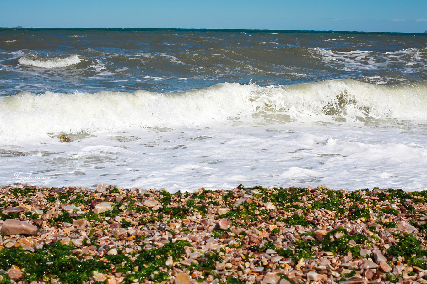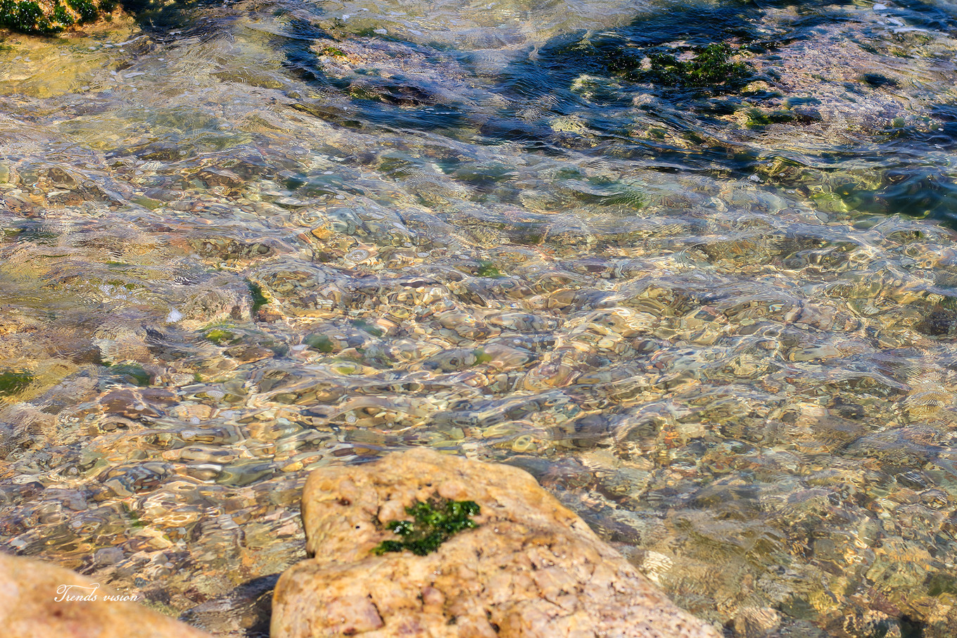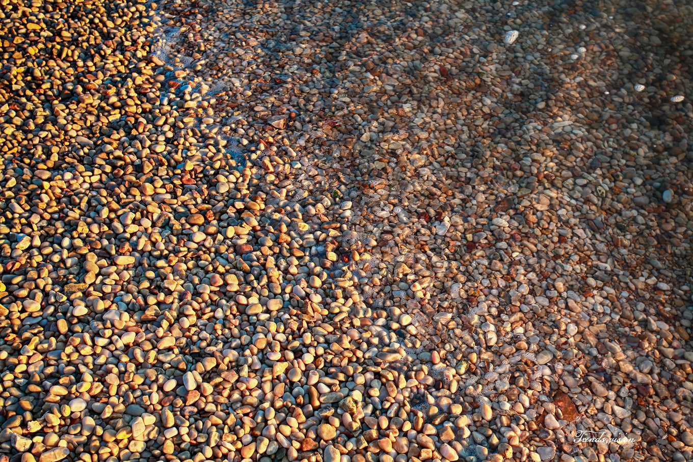 下圖黃渤海交際線附近也有一個球石海灘,這里的水質更加的清澈,一眼見底。