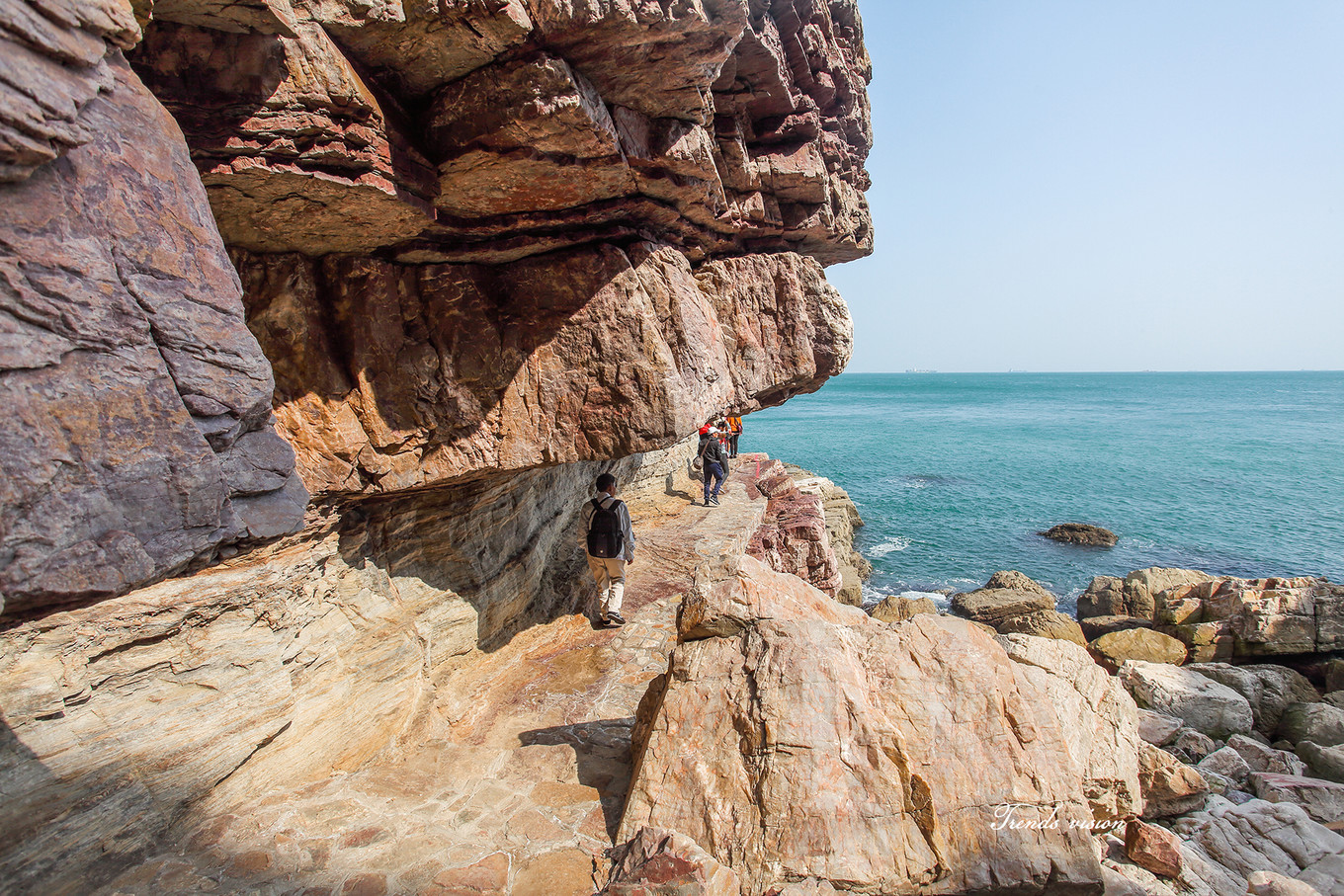 順著九丈崖的木梯棧道一路向東,可以到達景區(qū)月牙灣。