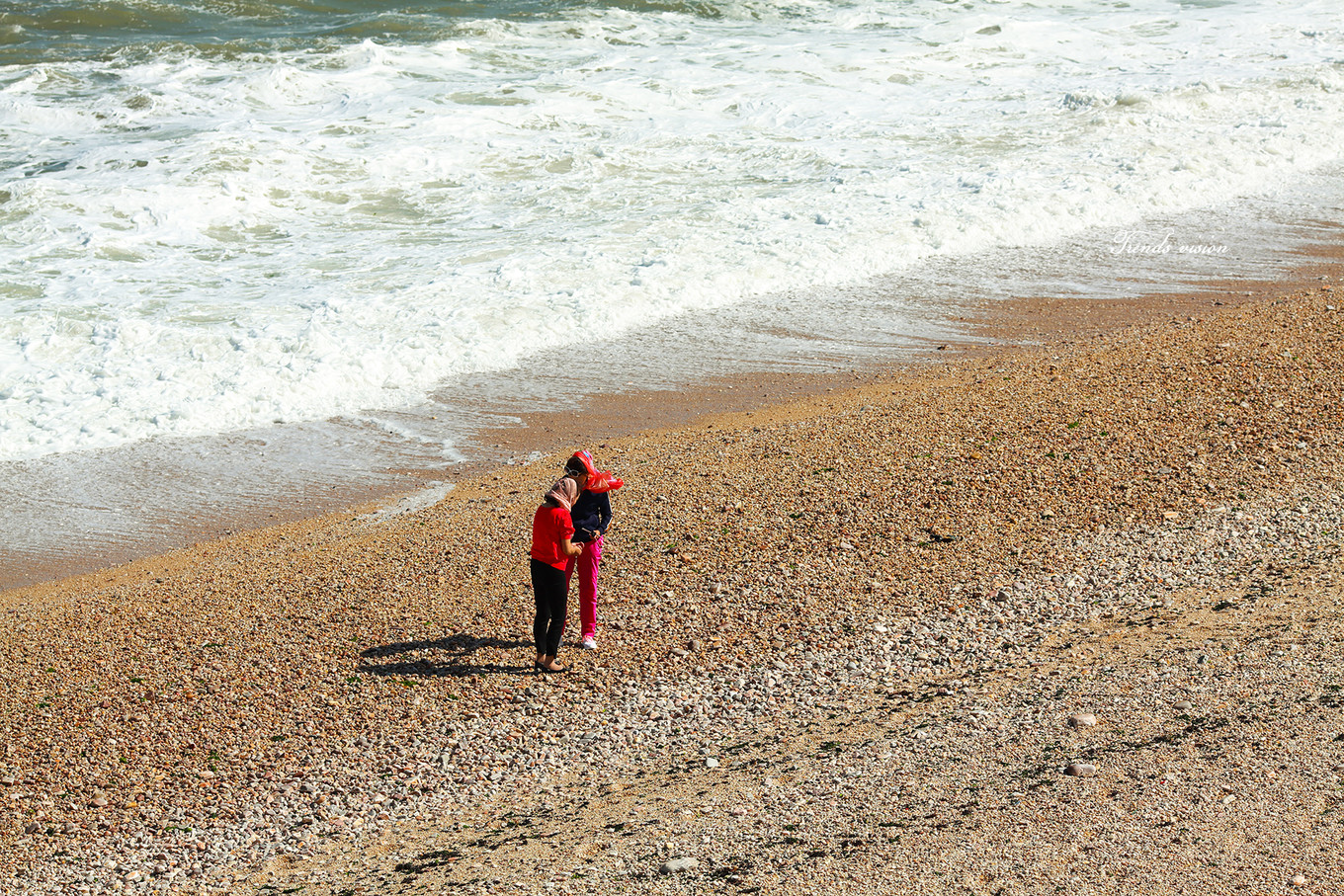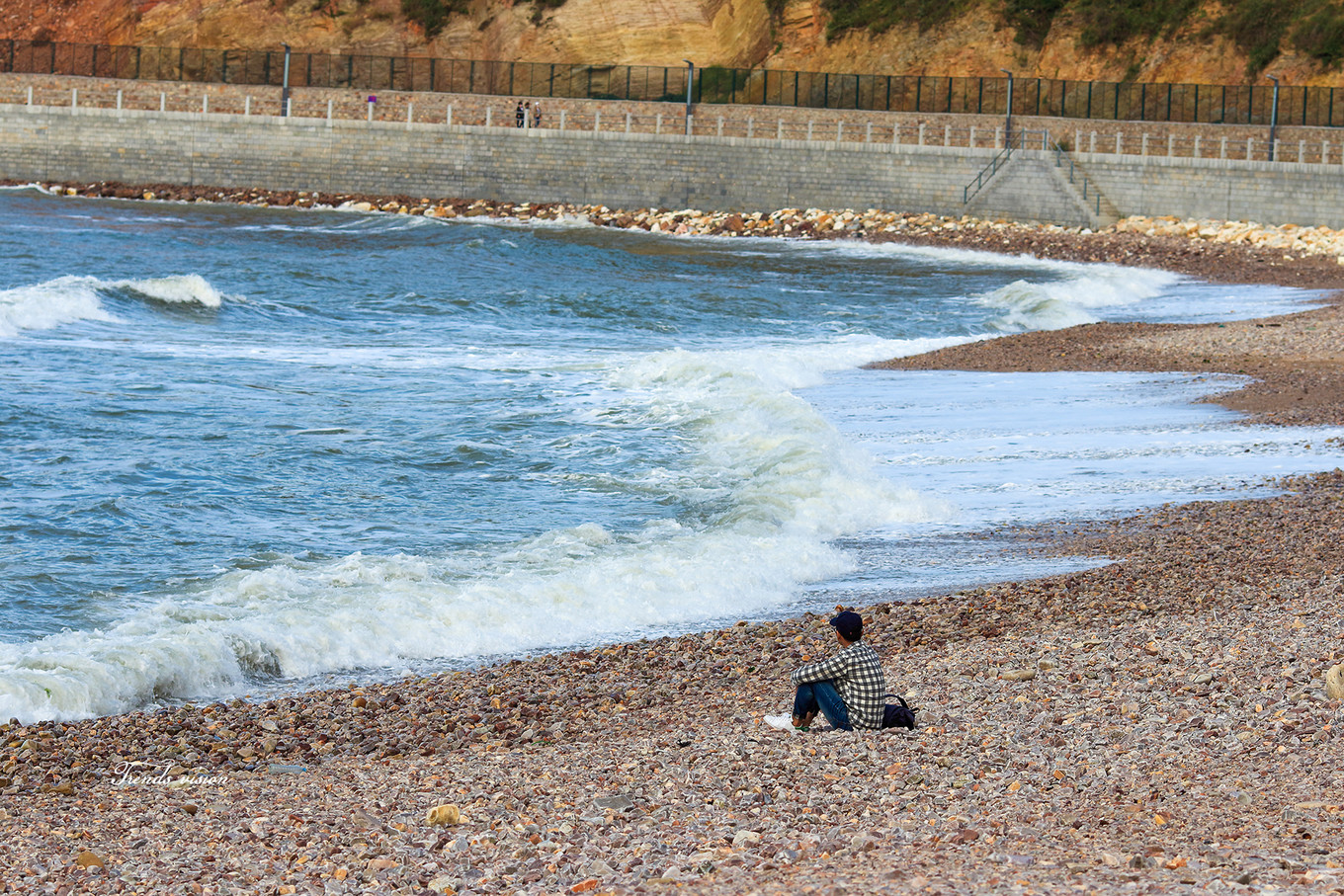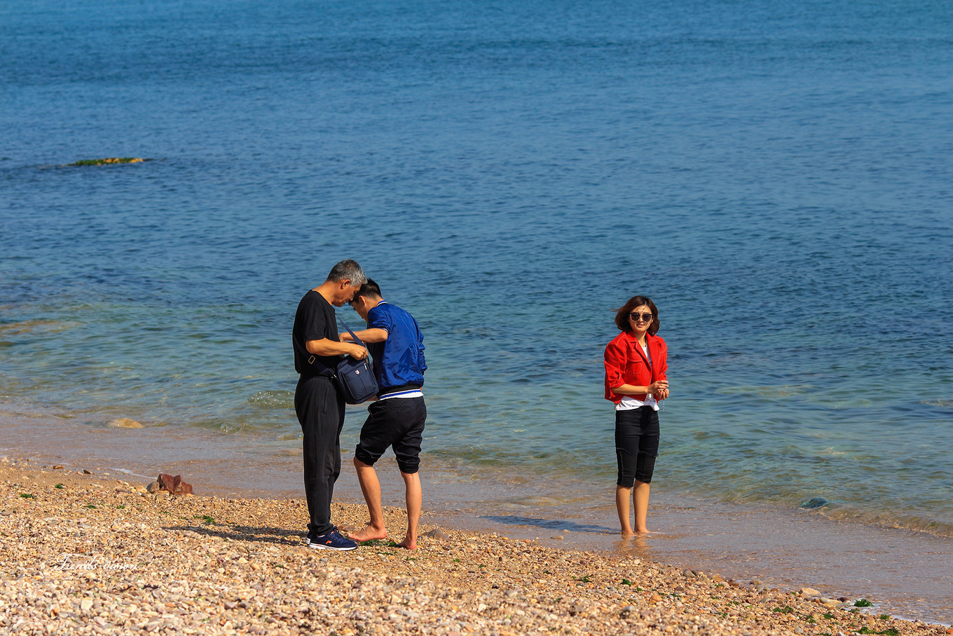 我們跑到了月牙灣東邊的一個亂石海灘,這里好像正在開發(fā)修建,不要門票完全免費,不清楚是淡季的原因,還是這里沒有人知道的原因,我們在這里呆了整整一上午,整個上午幾乎就沒有什么人,耐心的等待,可算等到了一波型男美女,立即抓住機會蹭拍了幾張照片。