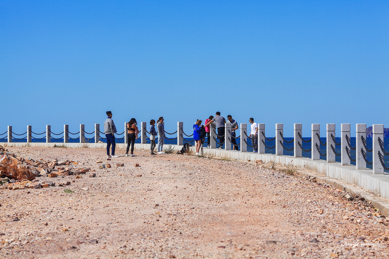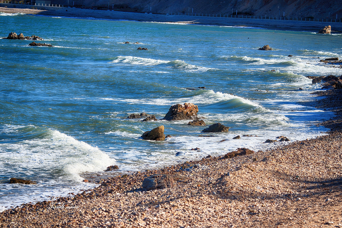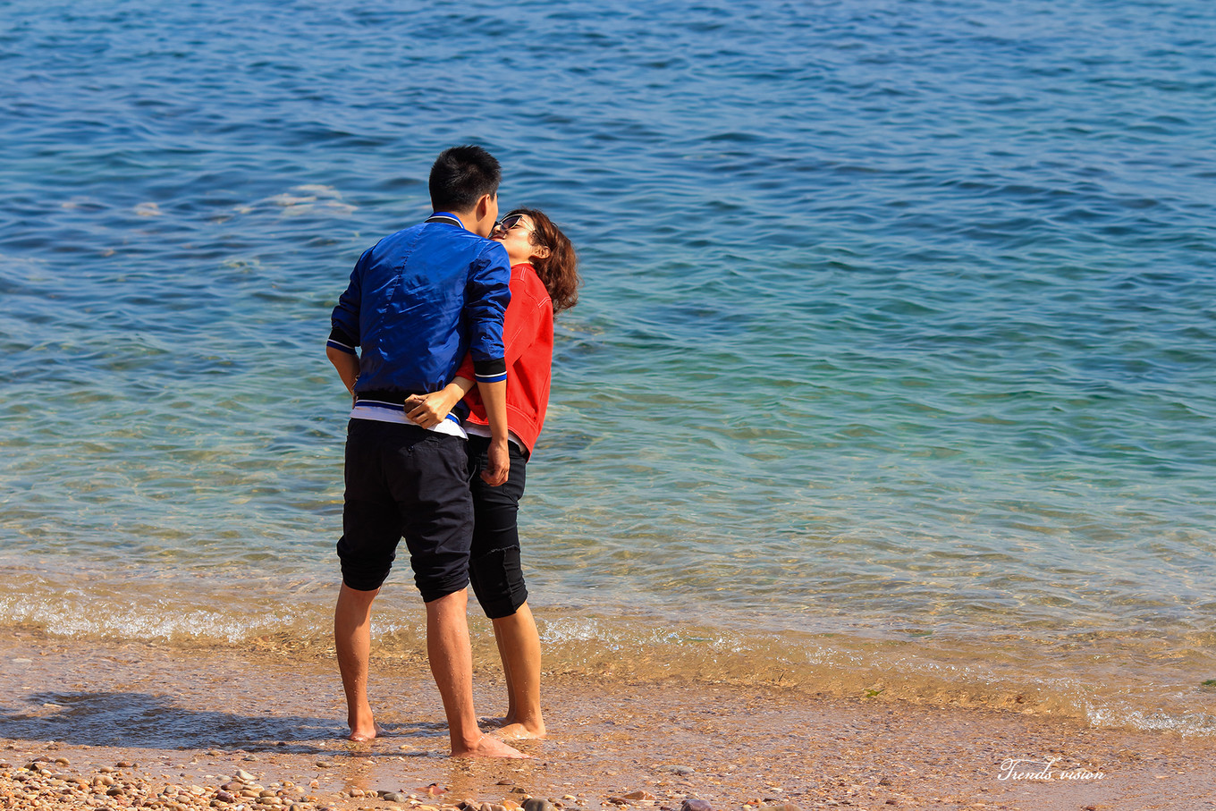 我們跑到了月牙灣東邊的一個亂石海灘,這里好像正在開發(fā)修建,不要門票完全免費,不清楚是淡季的原因,還是這里沒有人知道的原因,我們在這里呆了整整一上午,整個上午幾乎就沒有什么人,耐心的等待,可算等到了一波型男美女,立即抓住機會蹭拍了幾張照片。