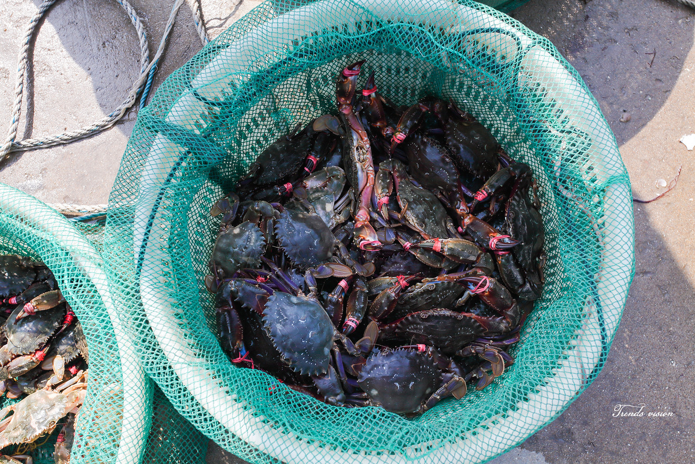 漁港碼頭,捕魚歸來的魚工兩手端著滿滿一筐魚獲,呼啦一下就傾倒在碼頭的空地上,周圍的魚販子蜂擁而至,圍剿最好的海鮮。