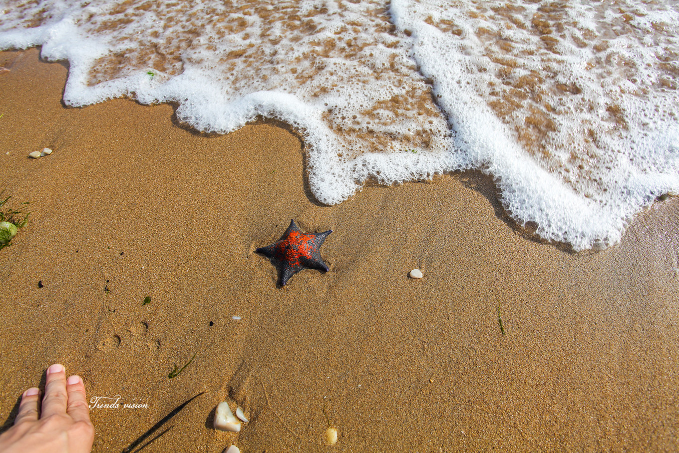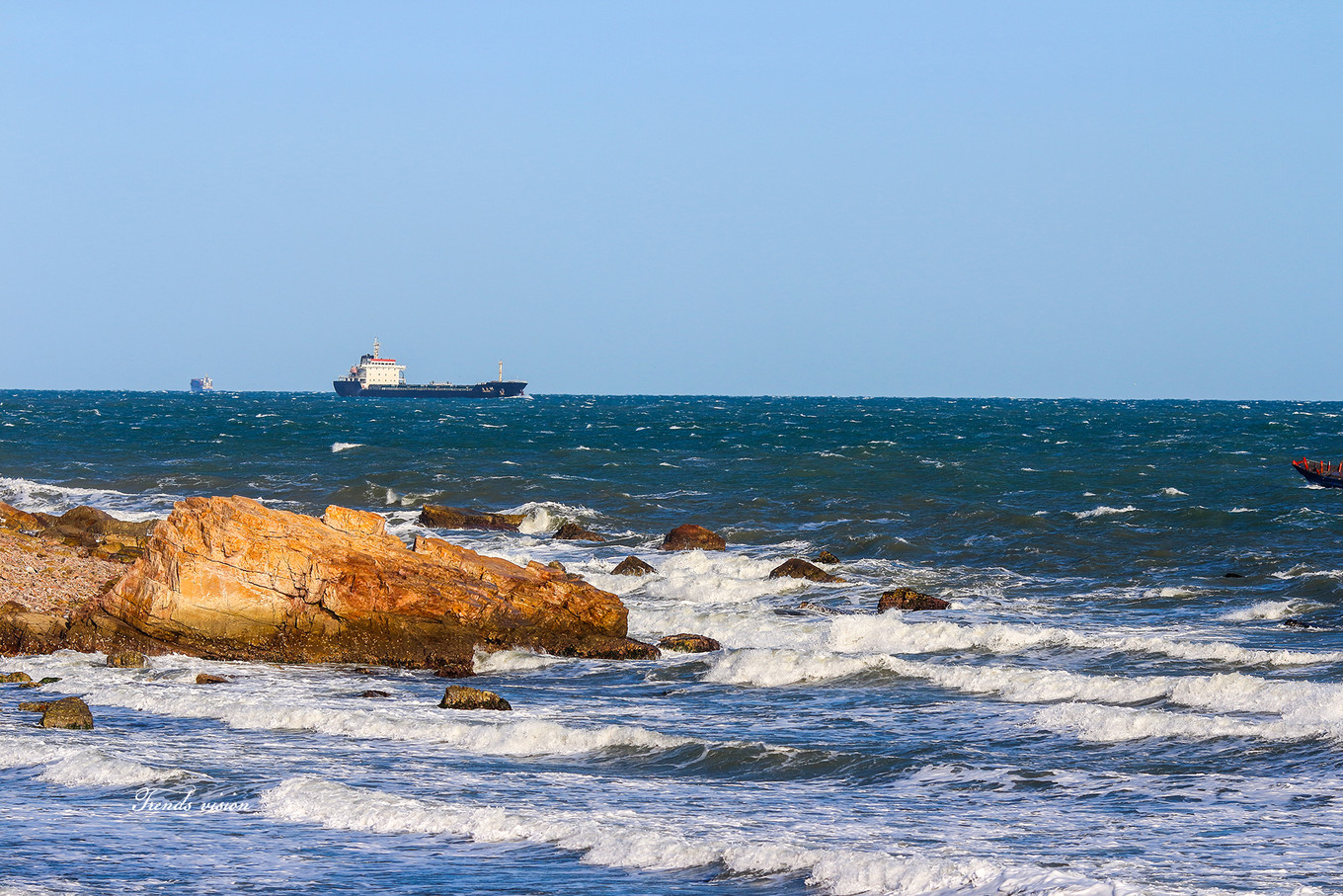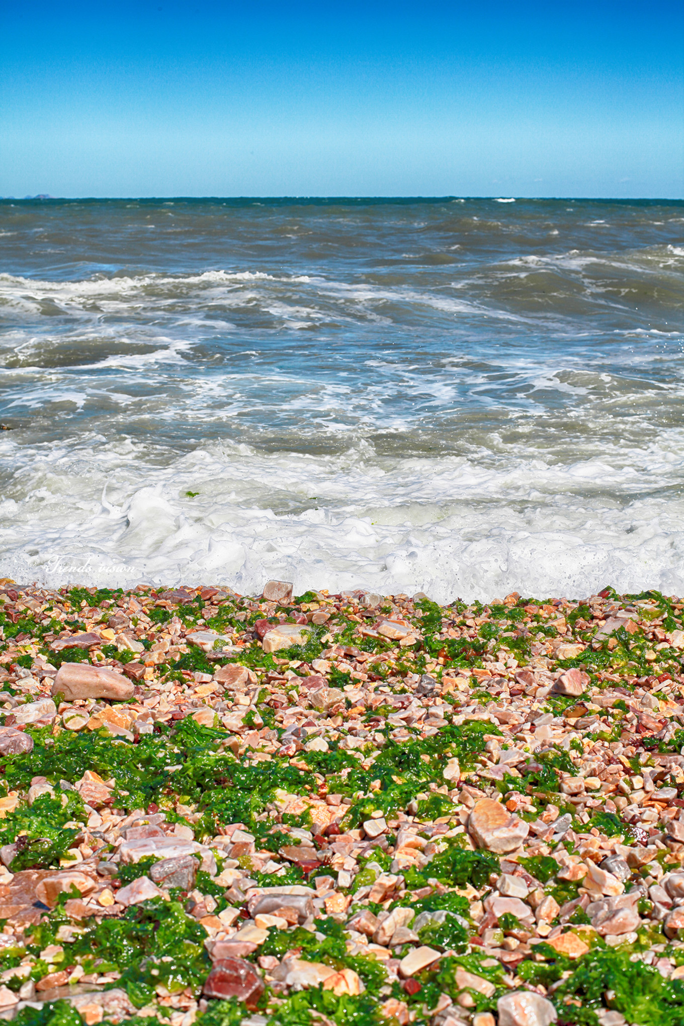 林海海灘仍然是球石海灘,海灘上是鴿蛋大小的球石,長年累月被海浪沖擊的滾圓滾圓的,異常光滑圓潤,密密麻麻的鋪滿了整個海灘,喜歡光腳的童鞋走在這樣的沙灘上是相當硌腳的。在海岸上有很多礁石,被海浪沖擊的已經很圓潤了,千萬不要濕腳走在石頭上,石頭上有很多苔蘚海草,見水就會變的很滑,一不小心就是個跟頭,撲騰一下栽倒到水中可就慘嘍。