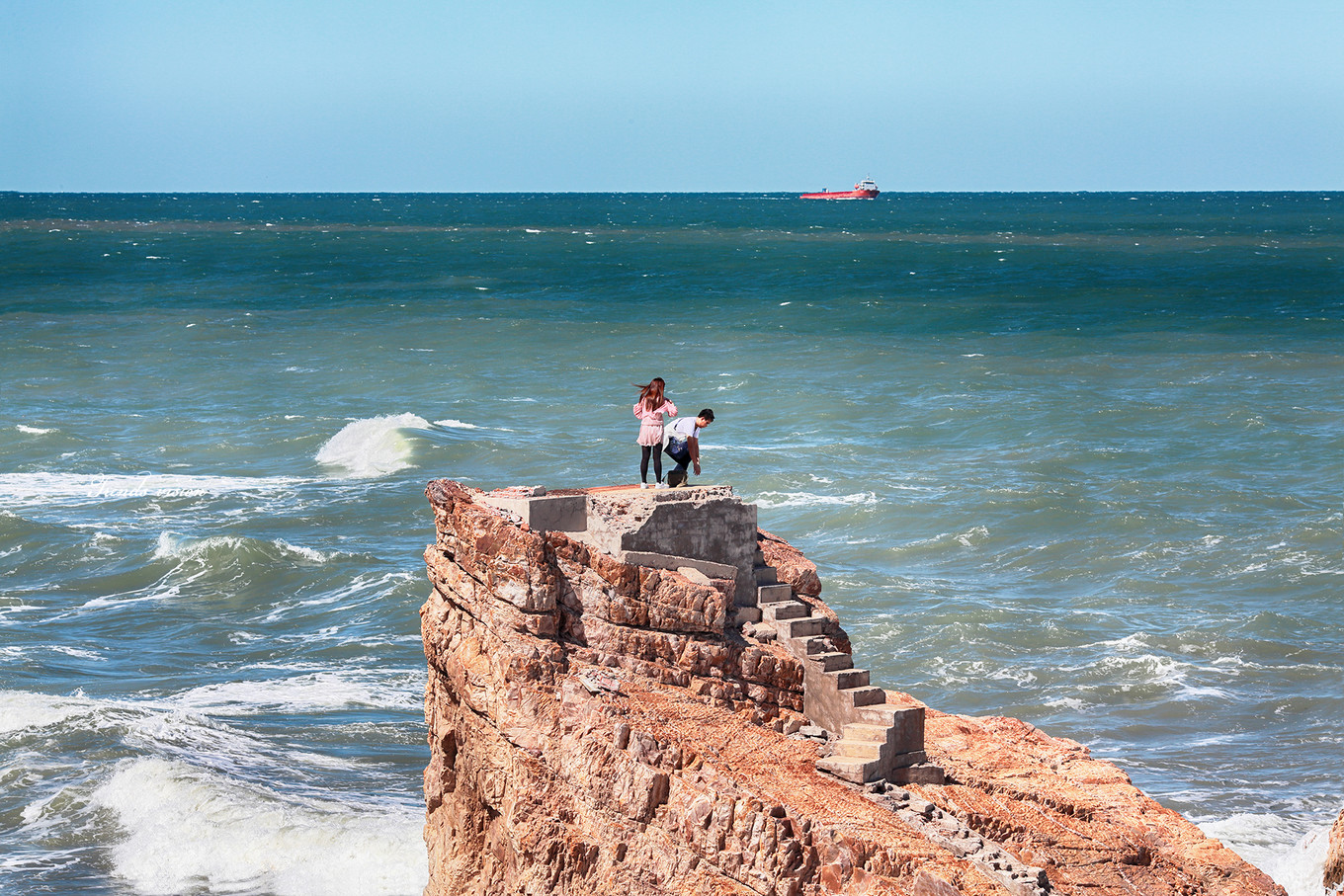 但是這里的風光還是很美的,山頂有很多風車。到了最高峰俯瞰大海,天際線處片片漁船在大浪中起伏,低處的月牙灣海灘盡收眼底。站在山頂大風吹的人幾乎無法站立,咱有恐高癥站在最高處唯恐被風吹下山崖,所以幾乎都是在匍匐前進。詳細美圖與攻略見下方詳介。