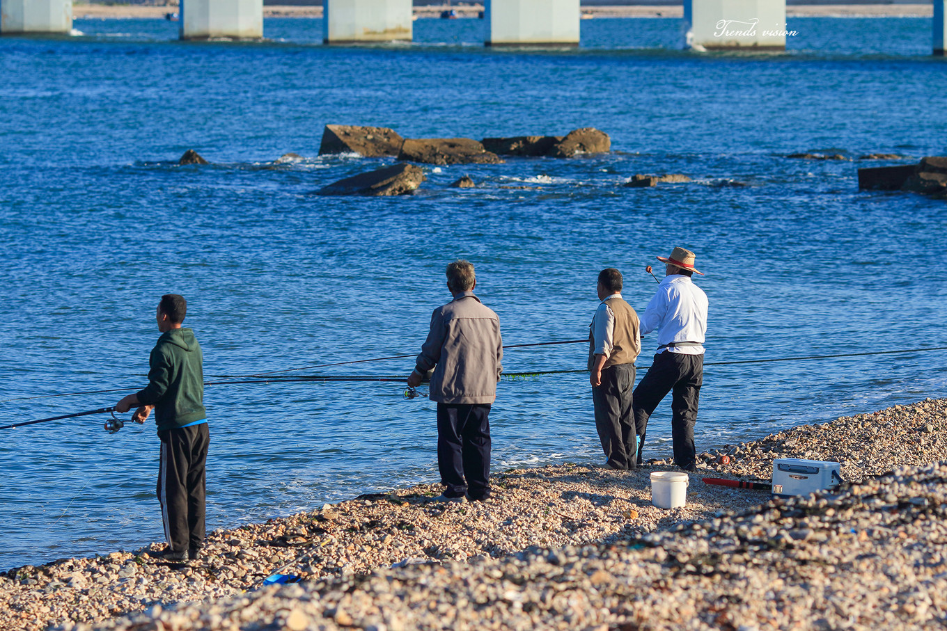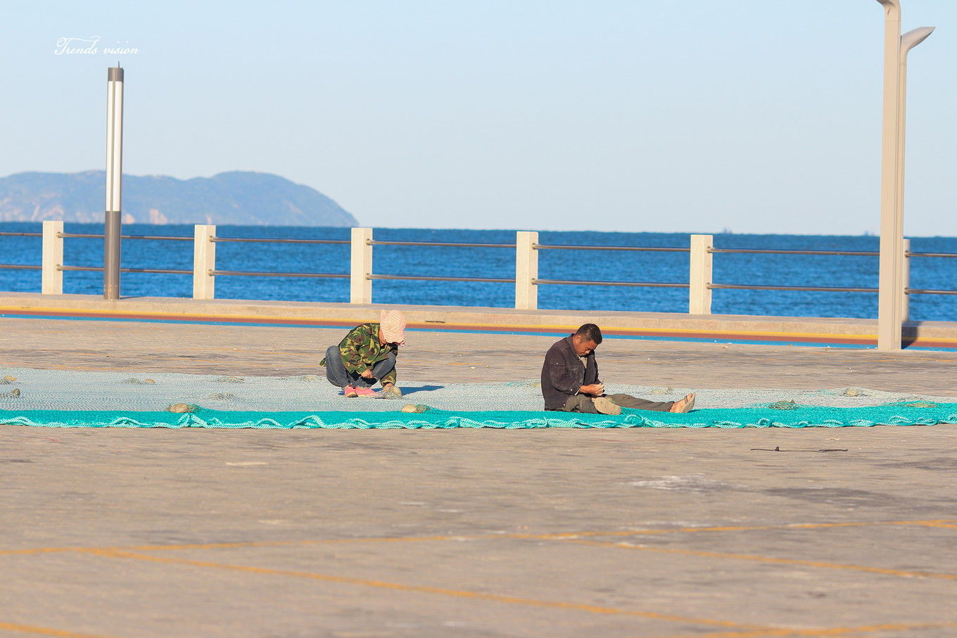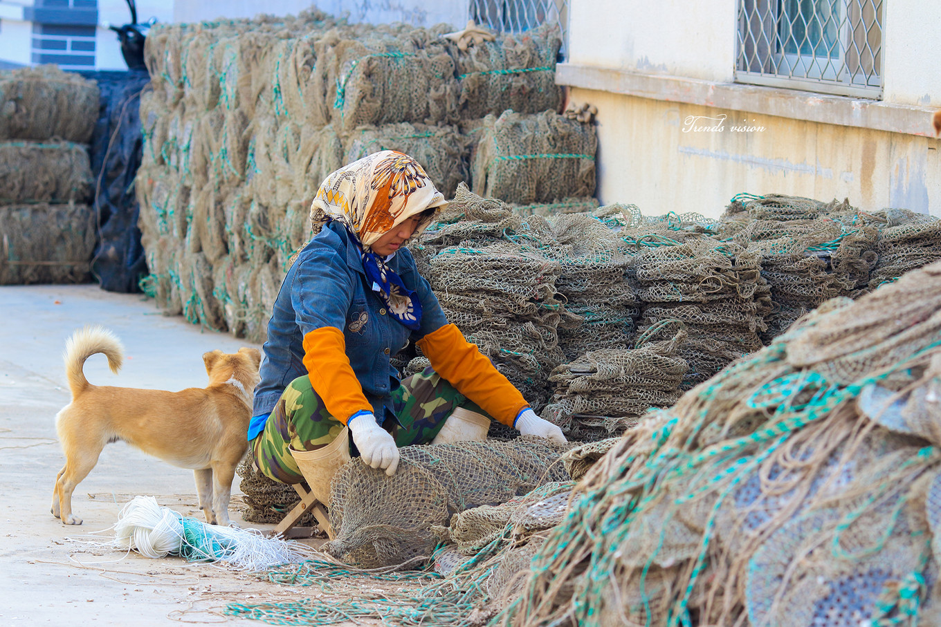 來到長島這個島嶼縣,魚獲海鮮當然是少不了的一道風景,我們專門跑到了南島與北島的交界處,連島大橋的漁港碼頭,問了在地上織魚網的漁民,他們順手一指:“就在那里,打漁回來的漁船在碼頭卸貨呢,大家都在那里買魚,現(xiàn)在就有幾艘”。
