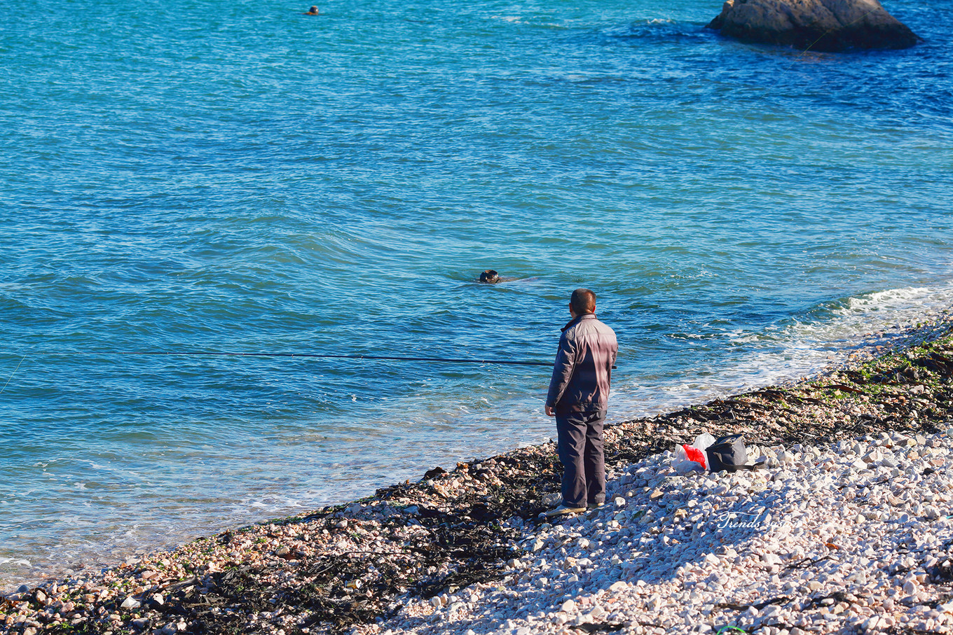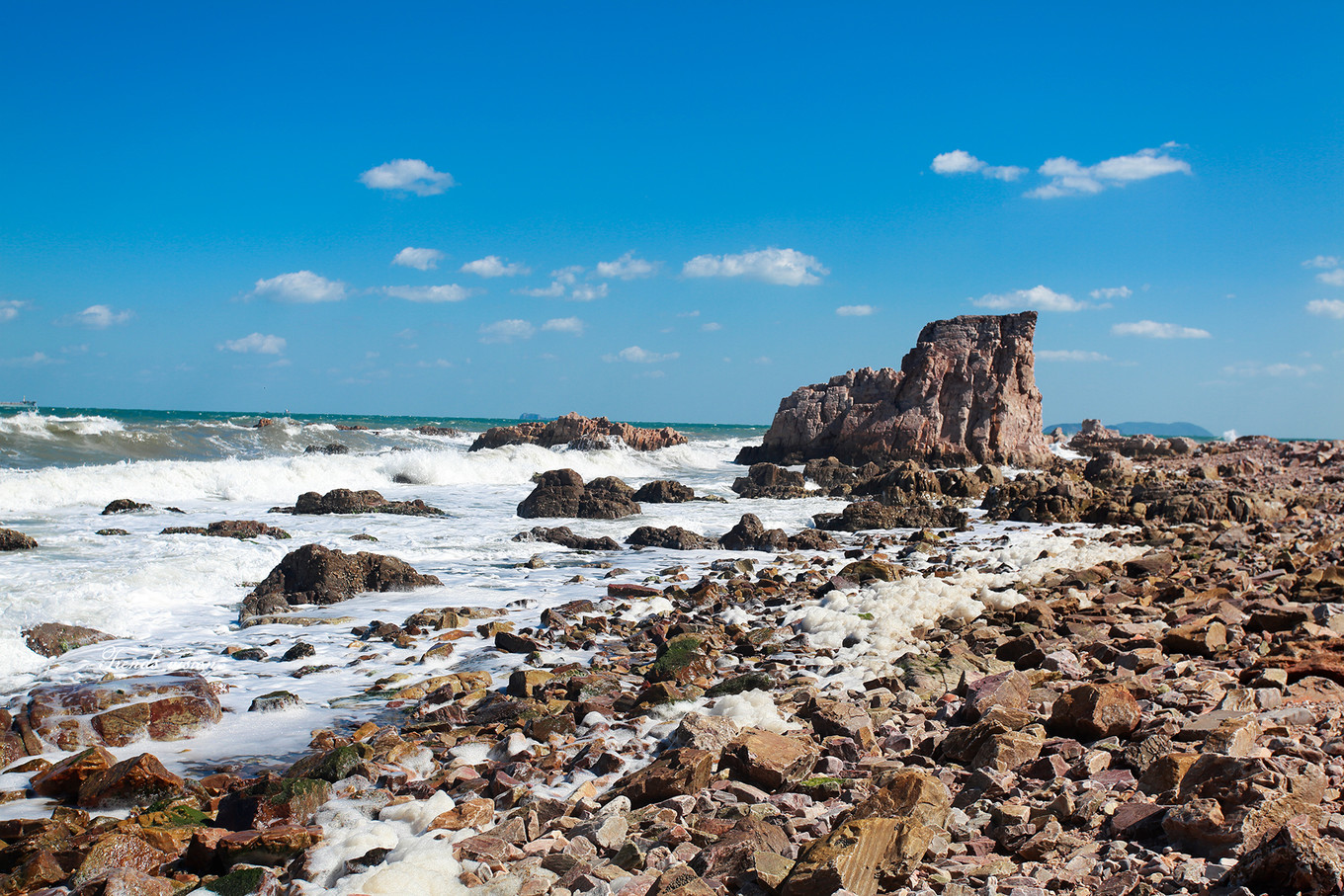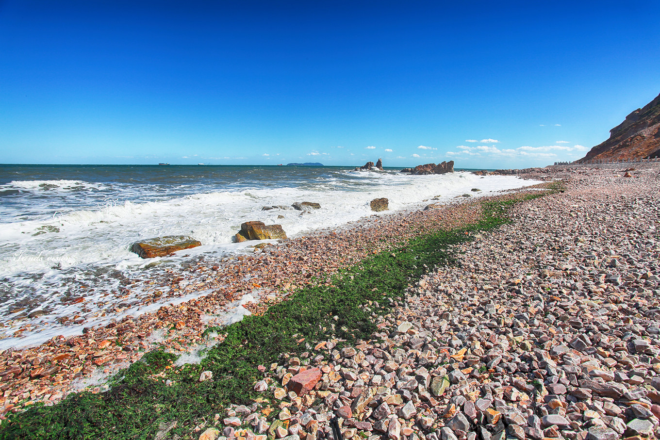 長山尾附近也有一個球石海灘,這里的水質更加的清澈,來這里的時間最好選擇早上10點以前,下午4點以后,因為這片海灘陽光太充足了,商業(yè)化不濃,連個遮陽傘都沒有,曬、曬、太曬了。美女們出游一定記得防曬!防曬!