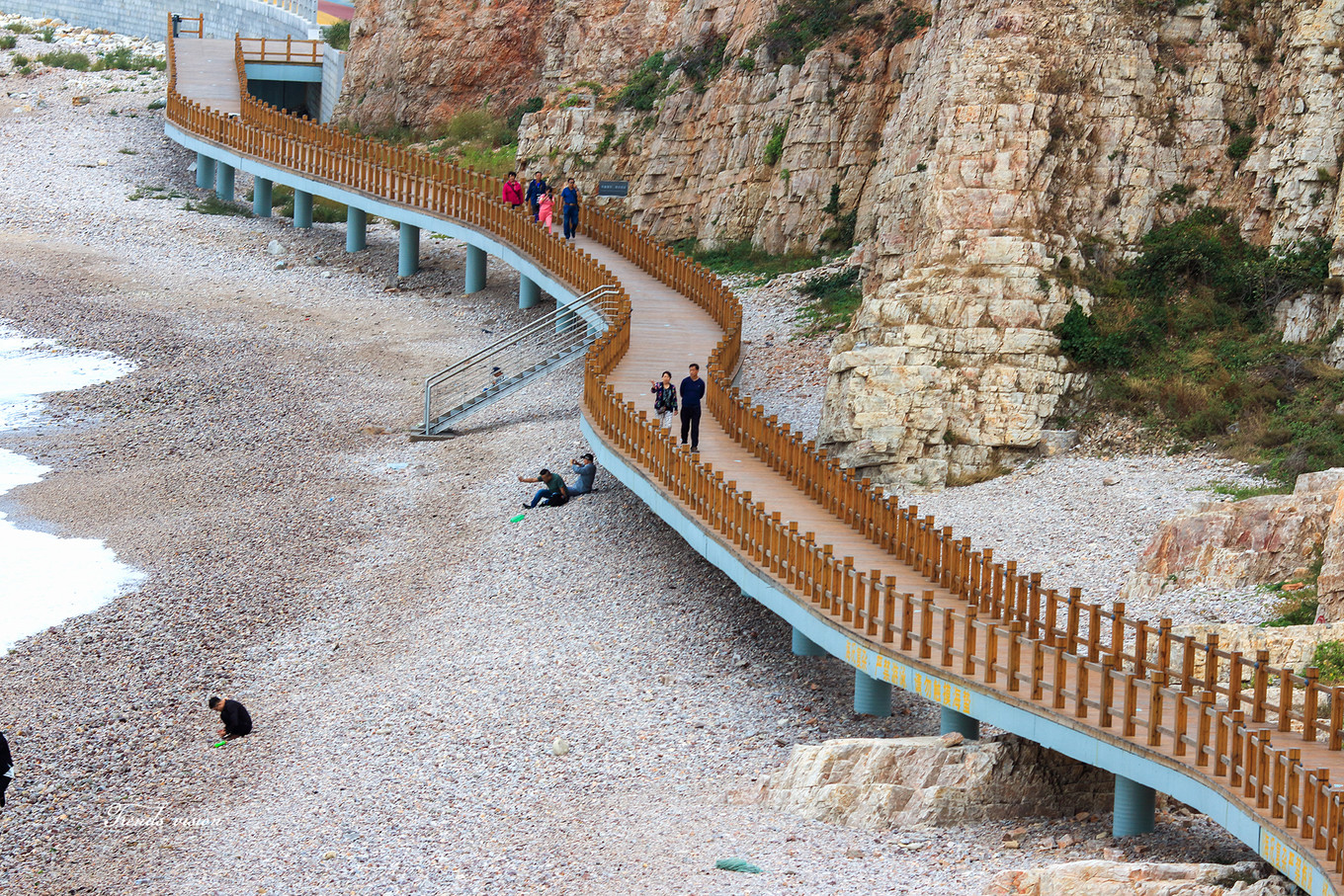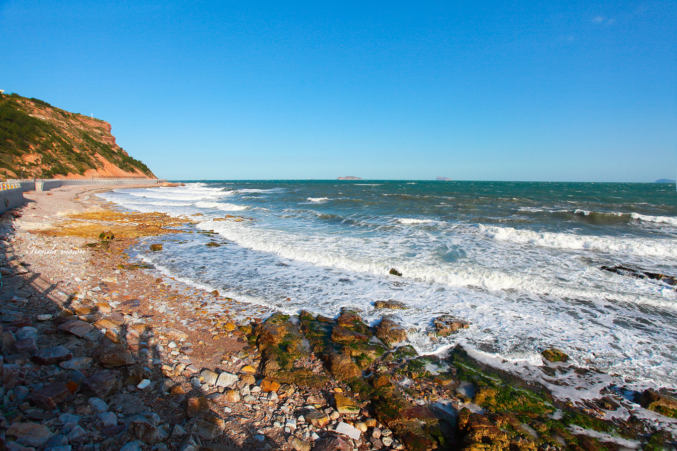 吃過午飯,從奇石灘開始一路沿著環(huán)島路徒步直至連島大橋,走走拍拍走了好久(實際用時30分鐘可走完)。
