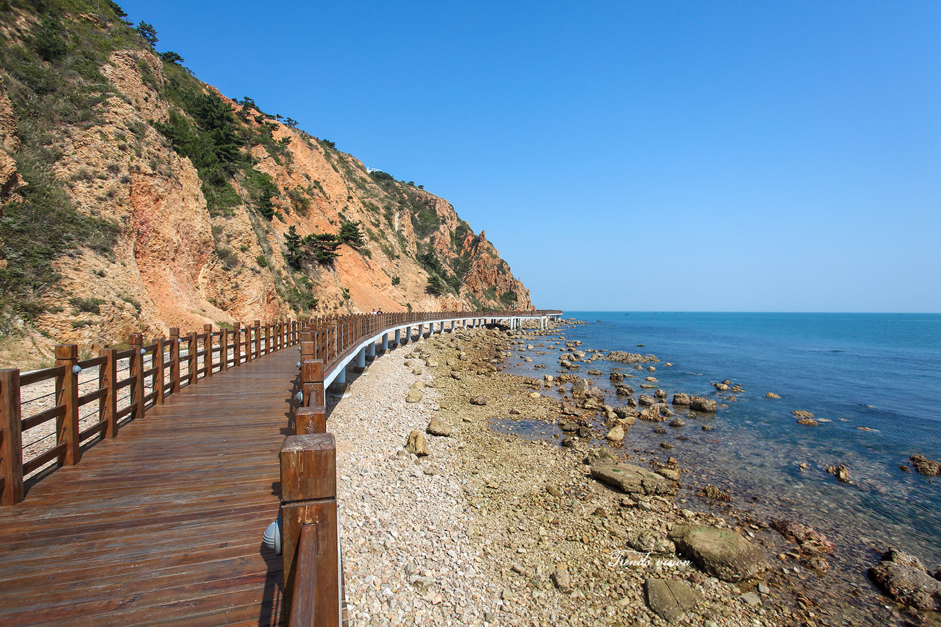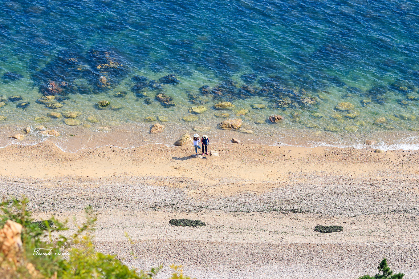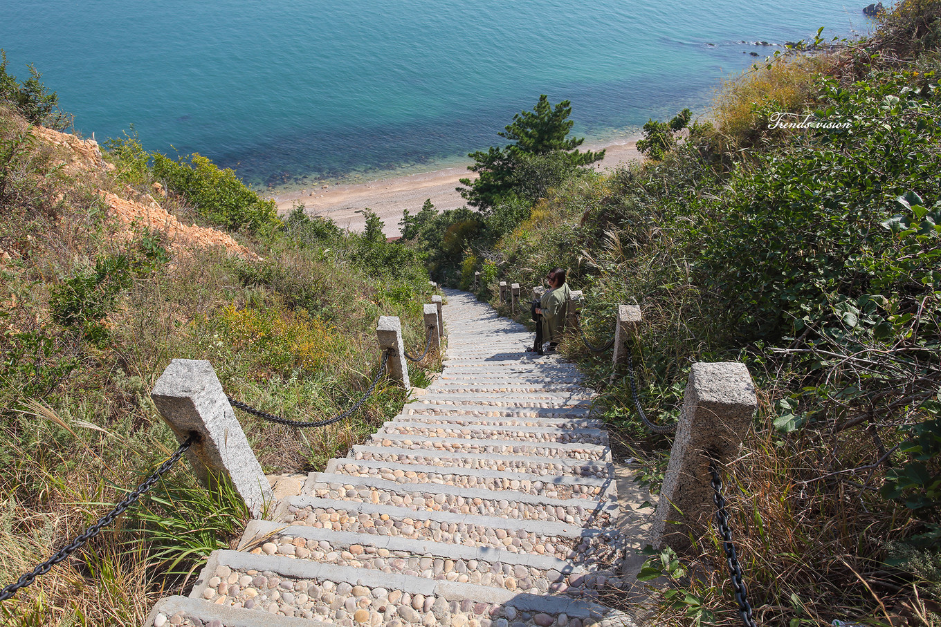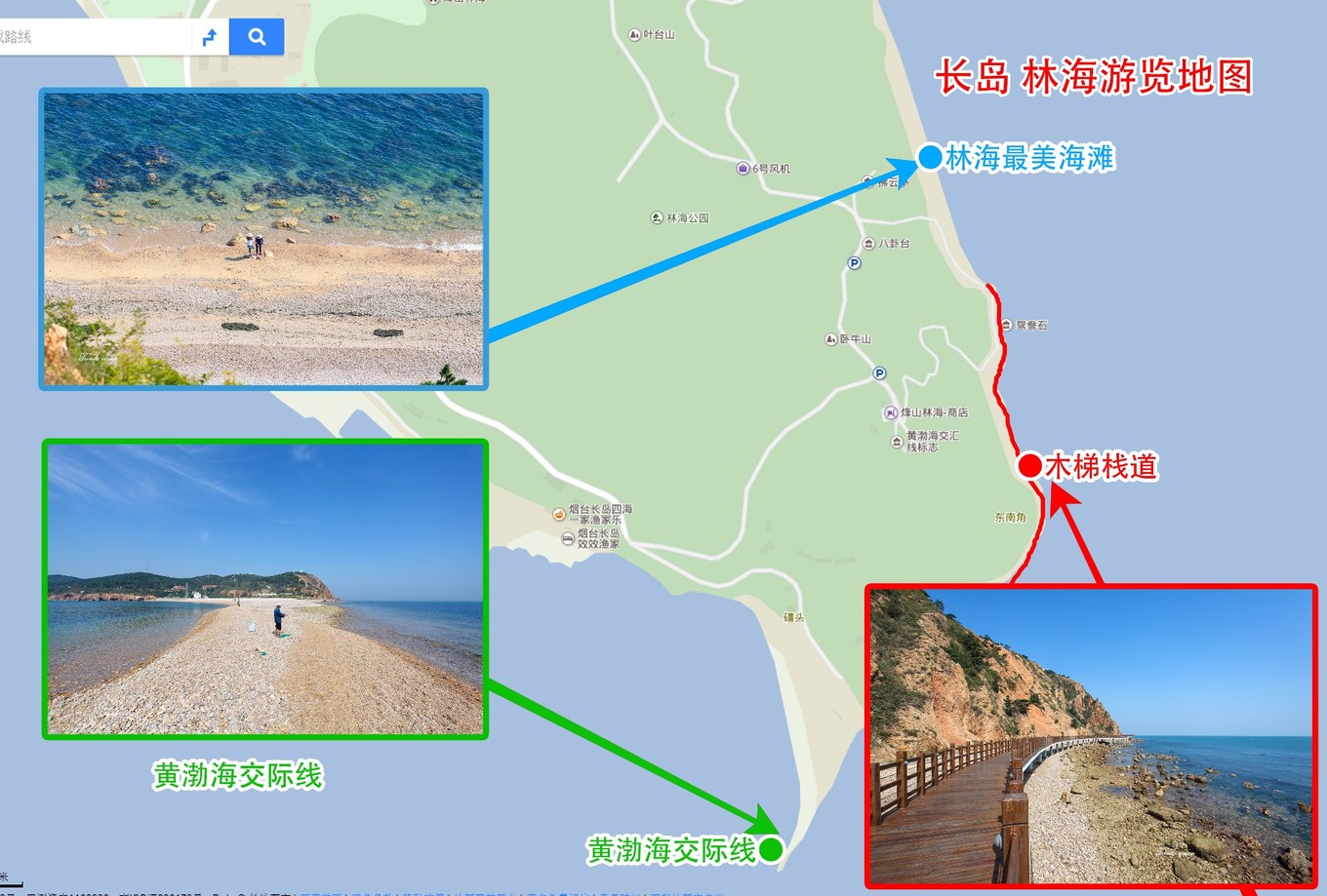 南島林海是重點,風景很好,6號風機下到山下,有一個球石海灘,水質很清澈,還可以沿著海邊的木梯棧道,一路看海徒步走到黃渤海交際線、在長山尾的水質尤其的好,海灘上有很多很大的球石,淺海處翻開球石,就會看到小螃蟹、小魚。
