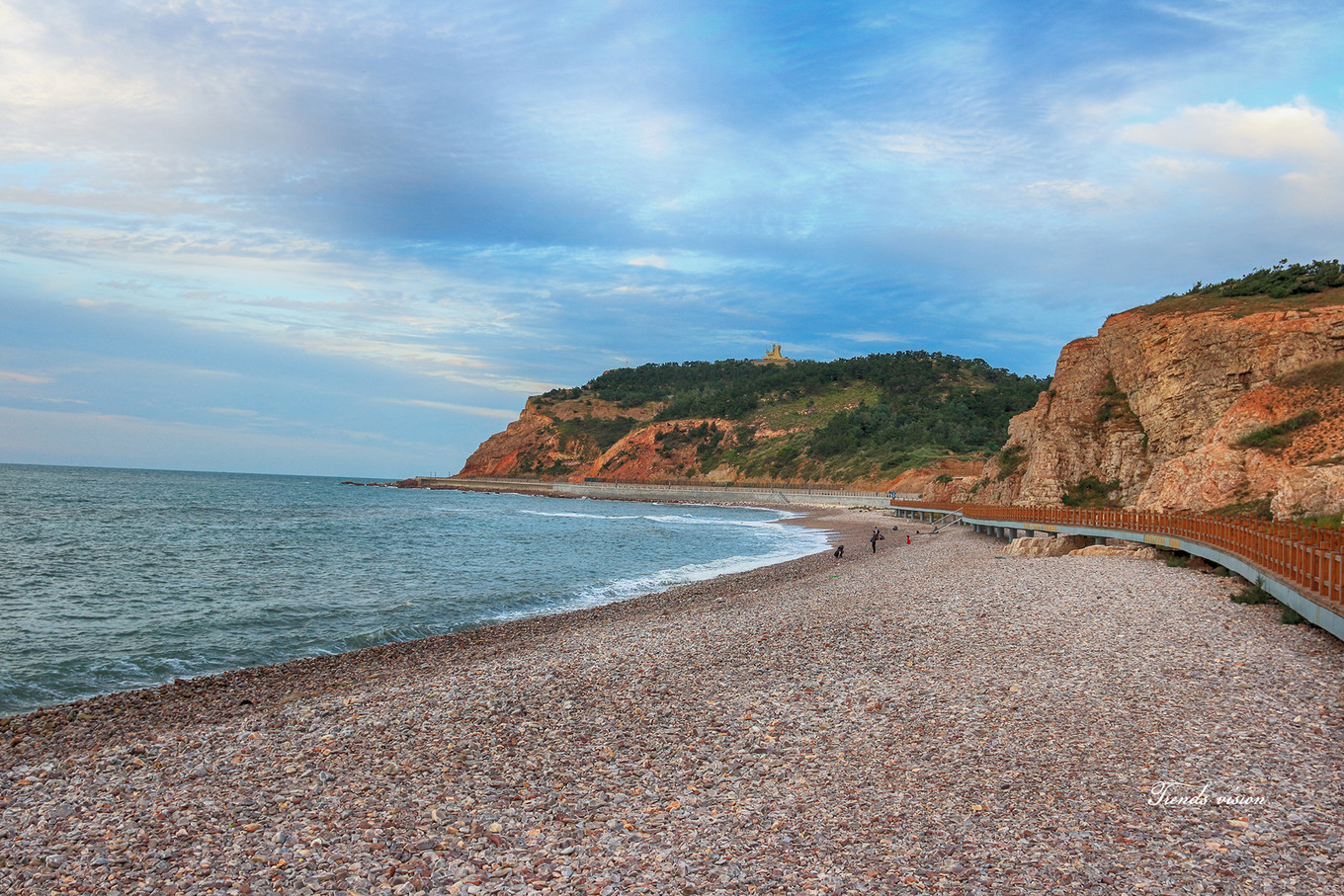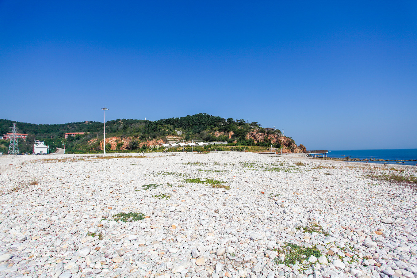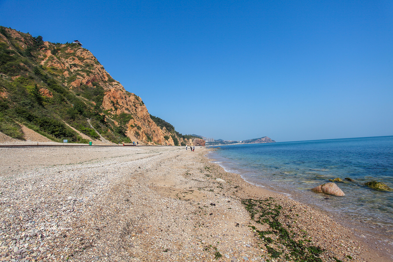 月涯灣向東走一個紅石海灘,灘涂上都是鴿子蛋一般大小的卵石,被大海大浪淘洗的滾圓滾圓的。