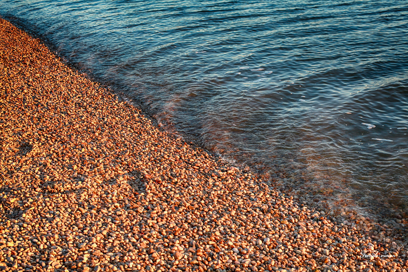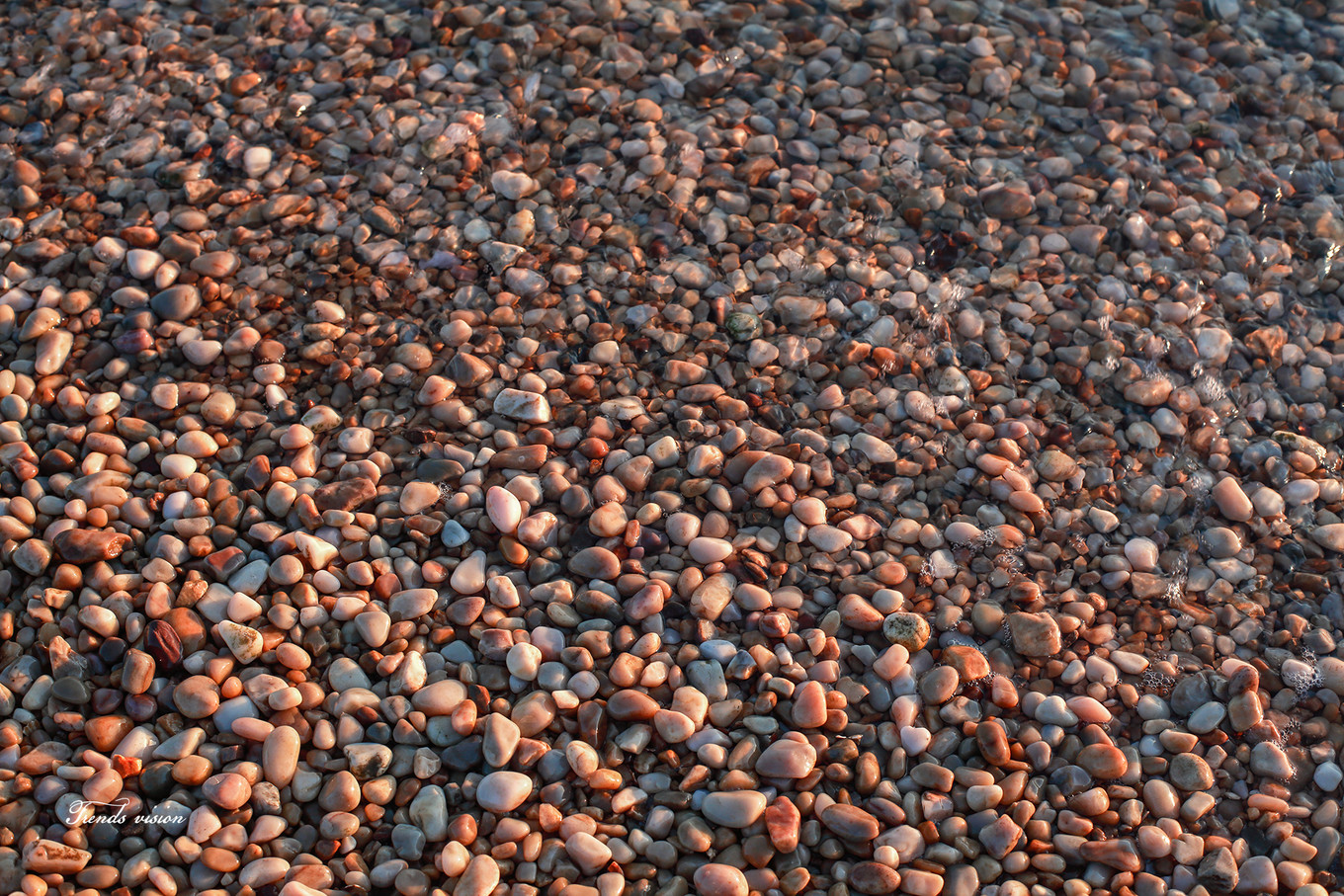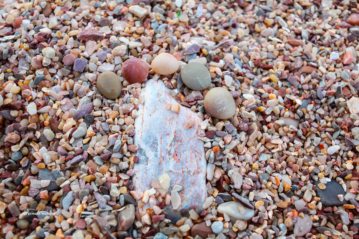 月涯灣向東走一個紅石海灘,灘涂上都是鴿子蛋一般大小的卵石,被大海大浪淘洗的滾圓滾圓的。