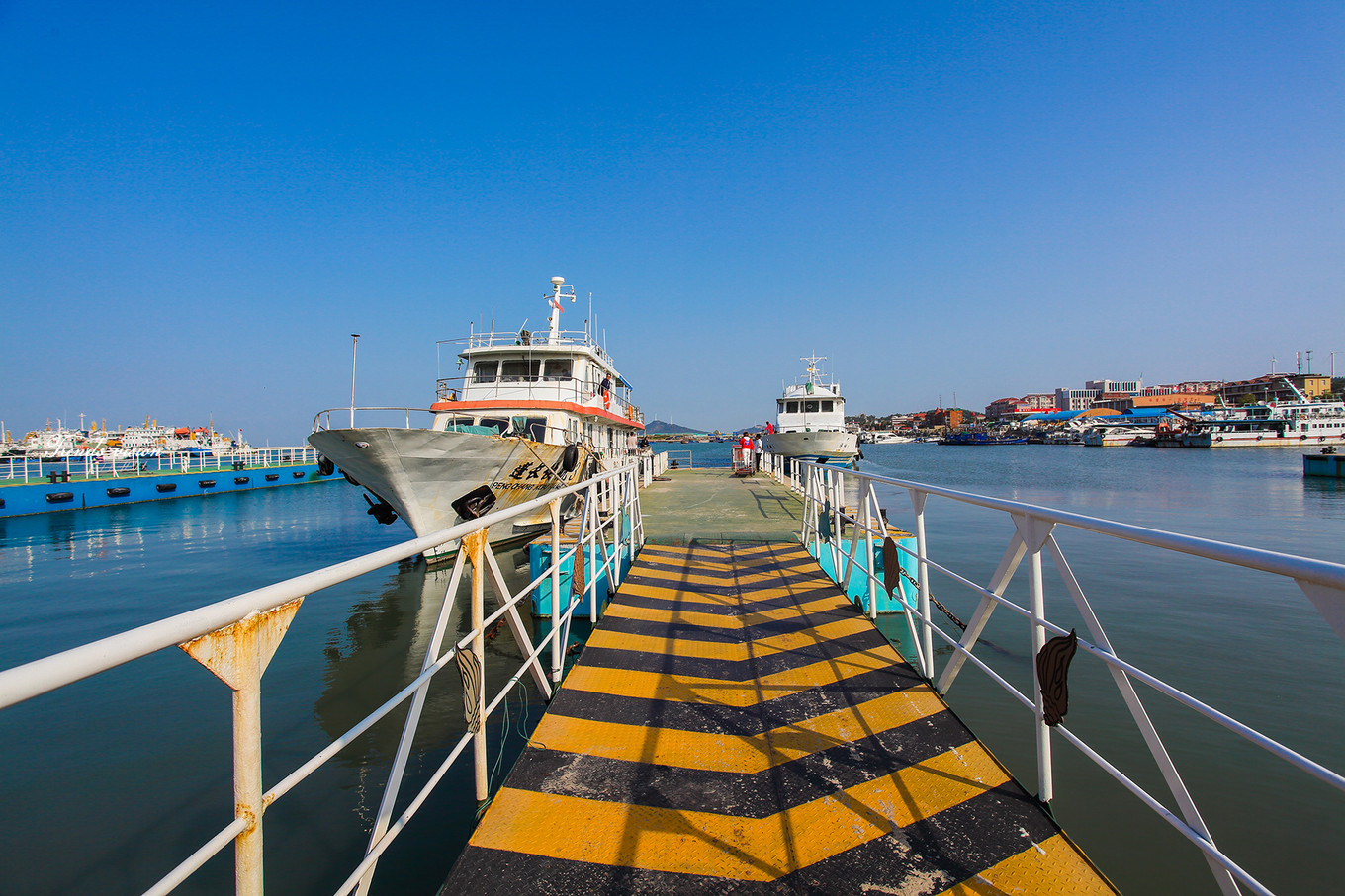 蓬萊汽車站乘坐5路公交車到終點站——海底世界站就是蓬萊港,船是半個小時一班,到長島時間40分鐘至一個小時,票價45元。