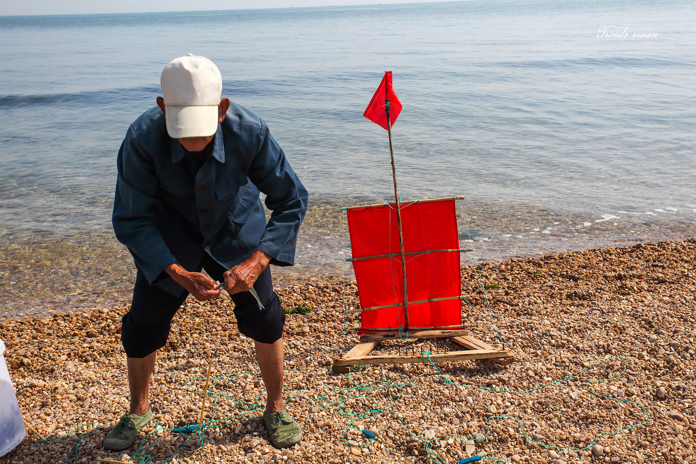 下圖老人收魚的時候,咱也客串了一次漁民,幫助魚人老大爺摘魚,但費了老半天勁咱竟然連一條魚都沒有摘下來,因為魚鉤實在是太深了,老人為了把魚摘下來,直接就把魚嘴撕爛了,咱可下不了這手,最后只好作罷。然后我就瞥見了老人鄙視的目光~哈哈