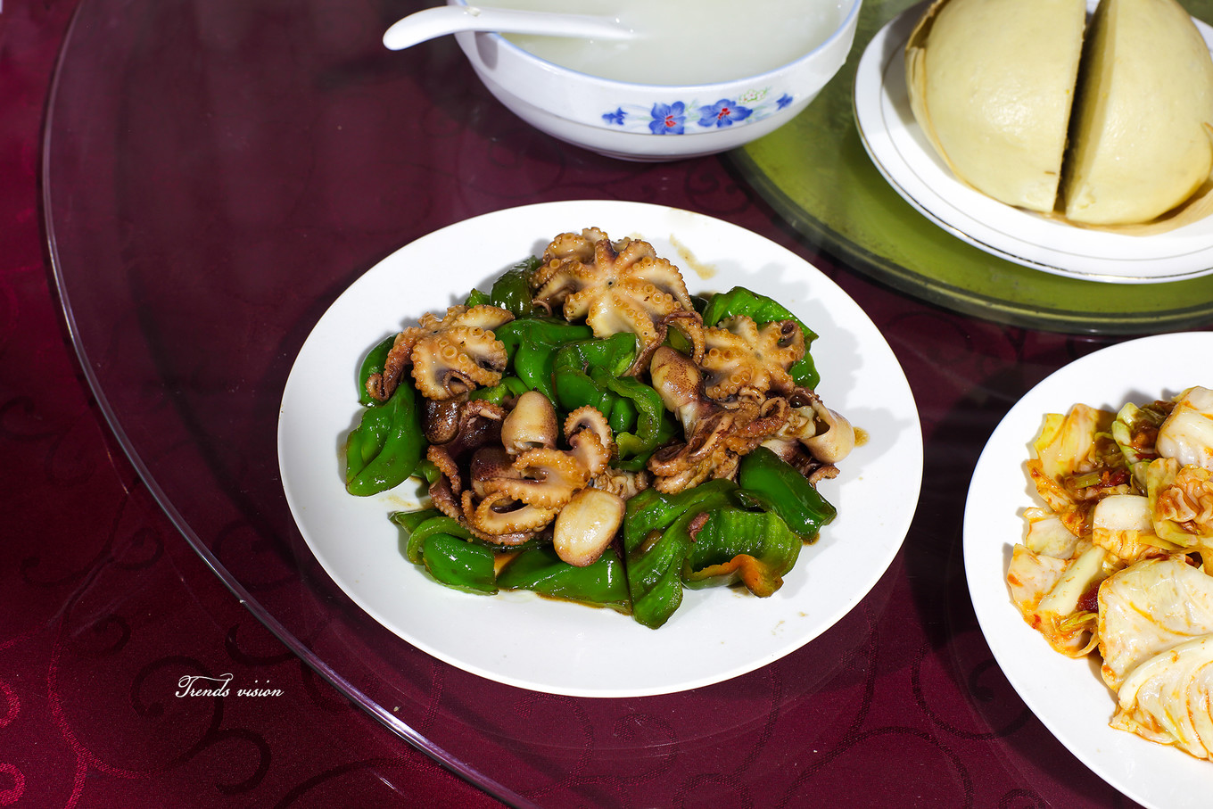 下圖青椒炒八爪魚,環(huán)渤海黃海附近屬于冷水海鮮,冷水海鮮由于天氣寒冷,生長緩慢,所以肉質緊實、口感勁道,八爪魚入口很有嚼勁。漁家老板的廚藝很棒每道菜都很有味道,這是長島吃到的最美海鮮。