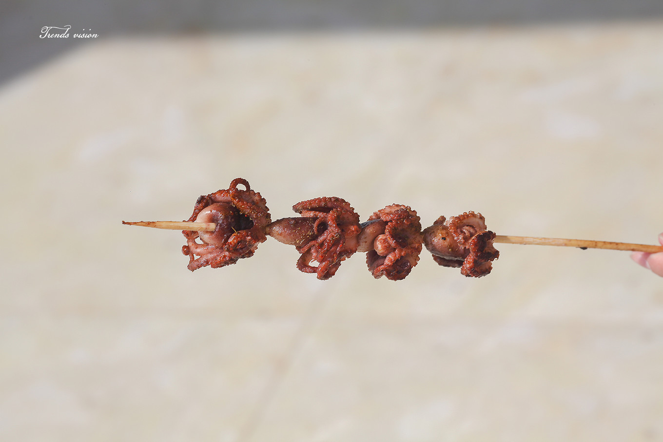 下圖:大黑山島龍爪山景點的烤八爪魚。