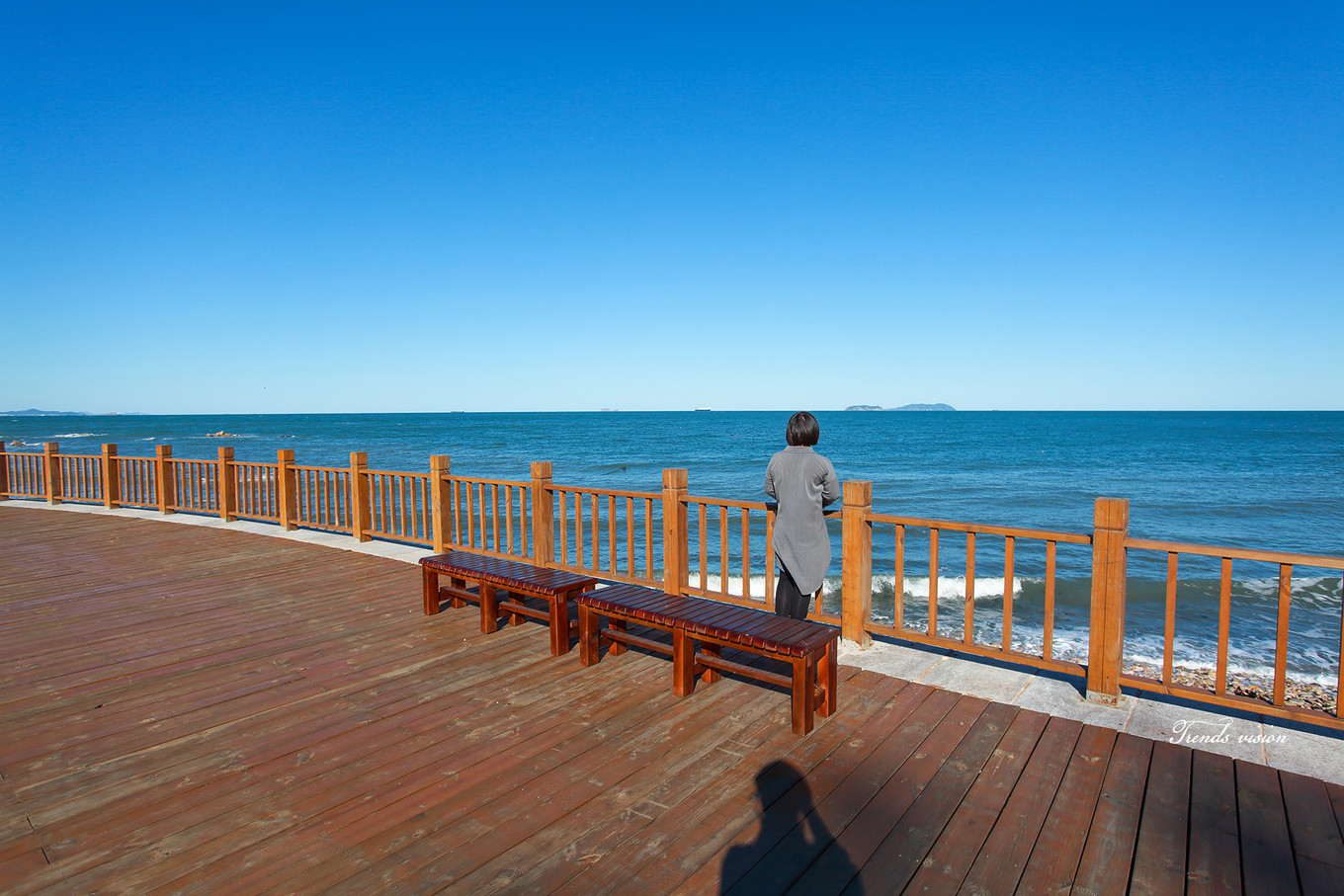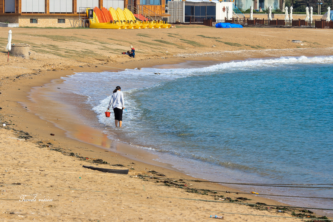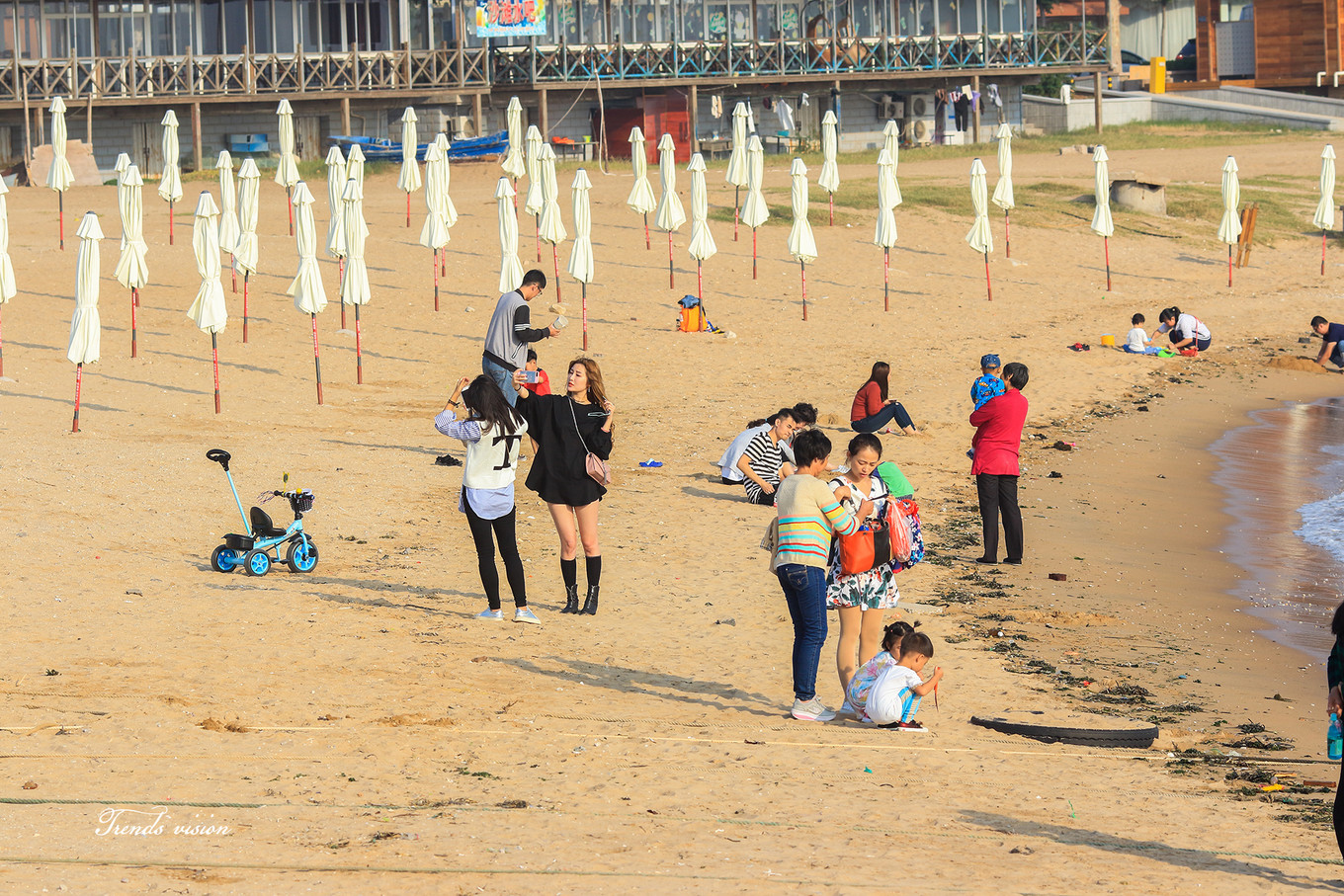 海上浴場是一個商業(yè)化的海灘,完全人造的海灘,也是長島的細沙沙灘,細沙灘下仍然是長島的經典球石,這個沙灘旁邊有一個明珠廣場,小吃一條街,旺季的時候非常熱鬧。而現(xiàn)在這個時節(jié),人跡罕至,無處吃飯,什么人都沒有,偶爾有幾個游客來這片沙灘上轉轉。