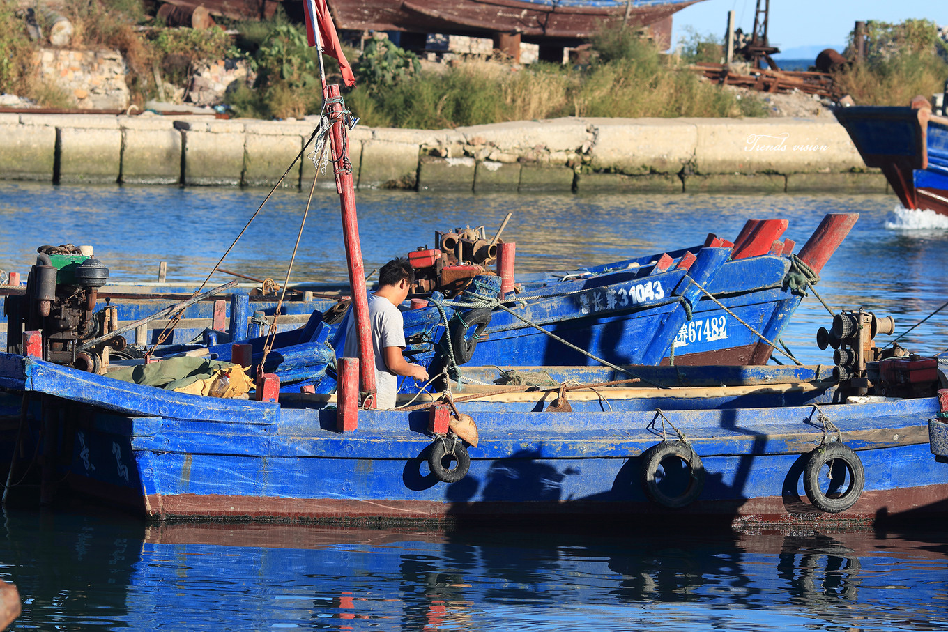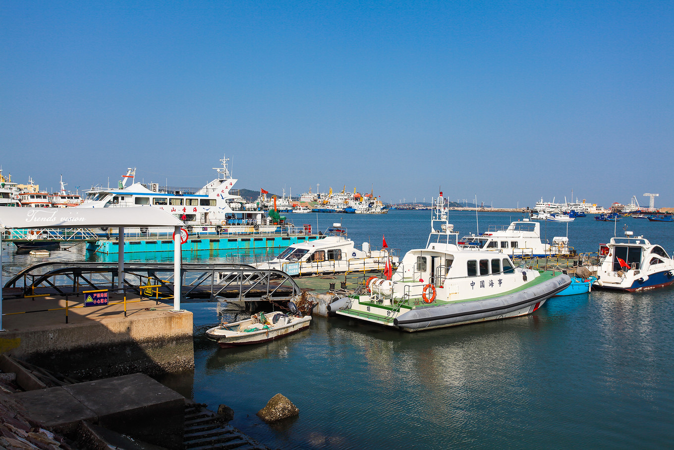海上游重頭戲——黑山島到了,龍爪山景區(qū)很漂亮,山勢在海邊天然成景,山峰錯落、旁邊是一望無際的藍色大海,這里海鮮資源應該很豐富,不遠處有很多藍漆的漁船在打漁。黑山島碼頭同樣的有一個漁港碼頭,漁民就在這里靠港,把全部的魚獲在此卸貨。