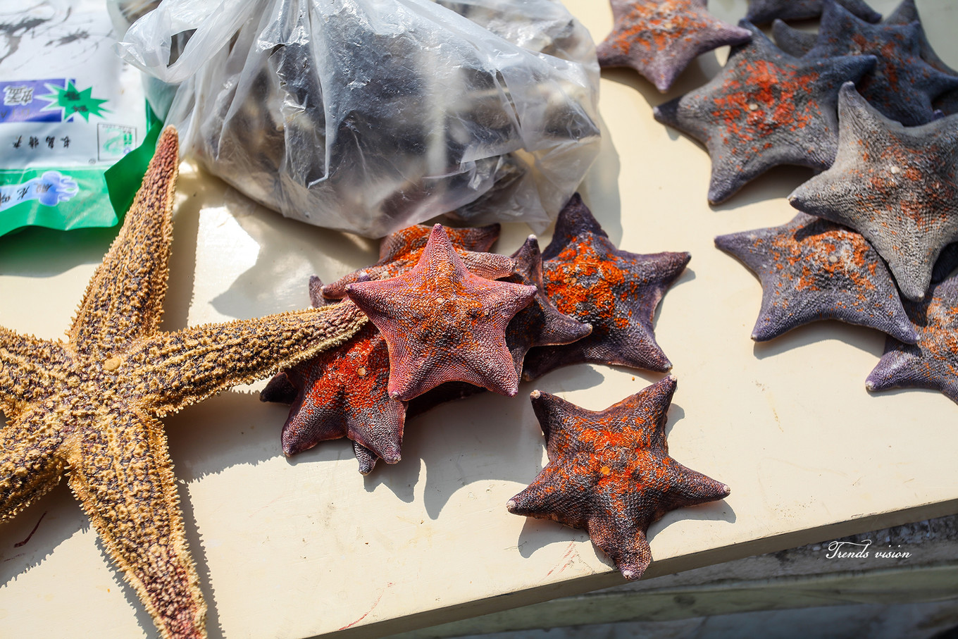 下圖 路邊有漁民出售干制海星,10元3個 小海星