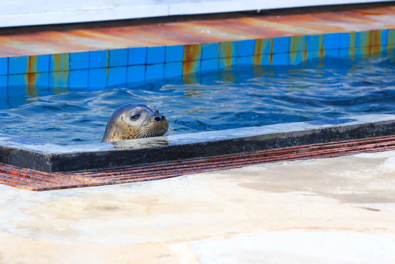 下圖正在發(fā)呆的功夫,一只海豹從水池中漏出腦袋不屑的看著我的鏡頭