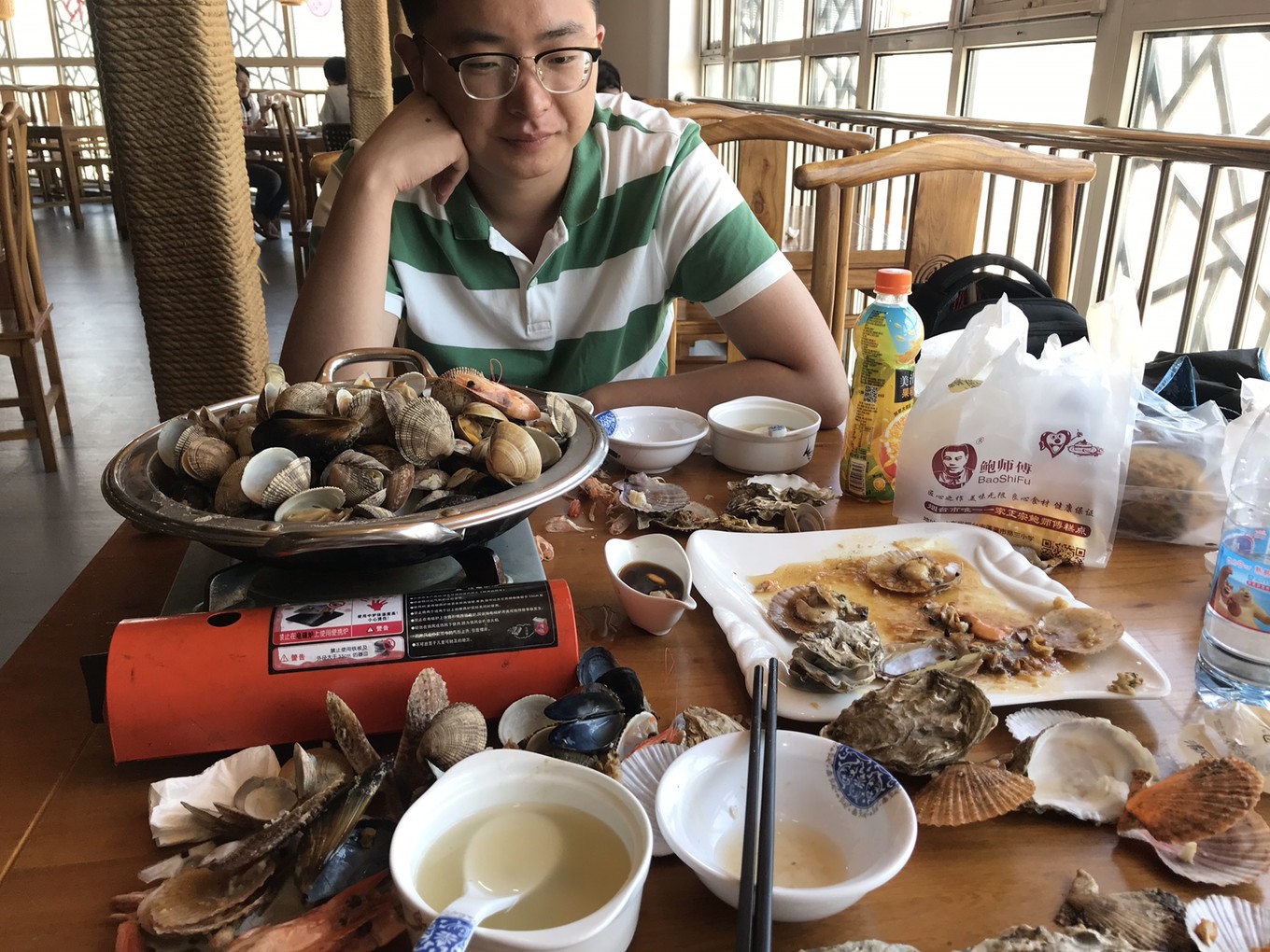 由于我男朋友吃不慣海鮮,所以晚飯我們定的燒烤外賣,島上訂外賣倒是很方便。