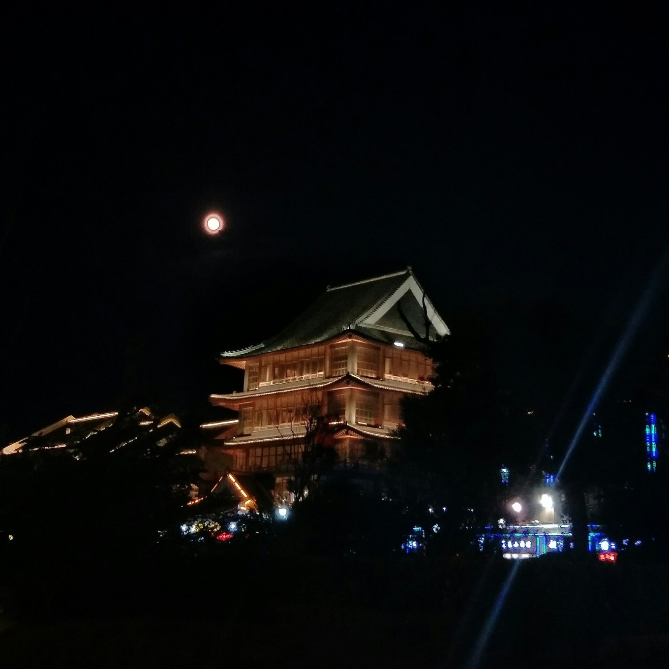 下圖,海灘邊的夜景,月亮很美
