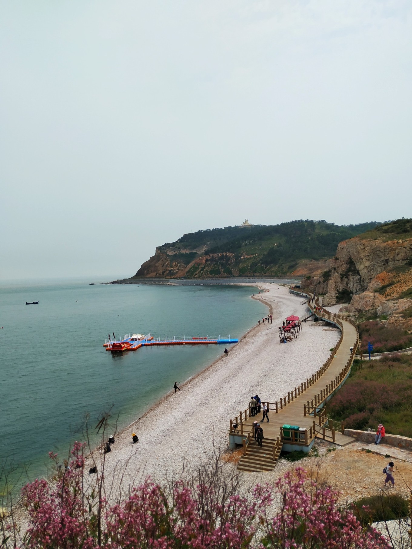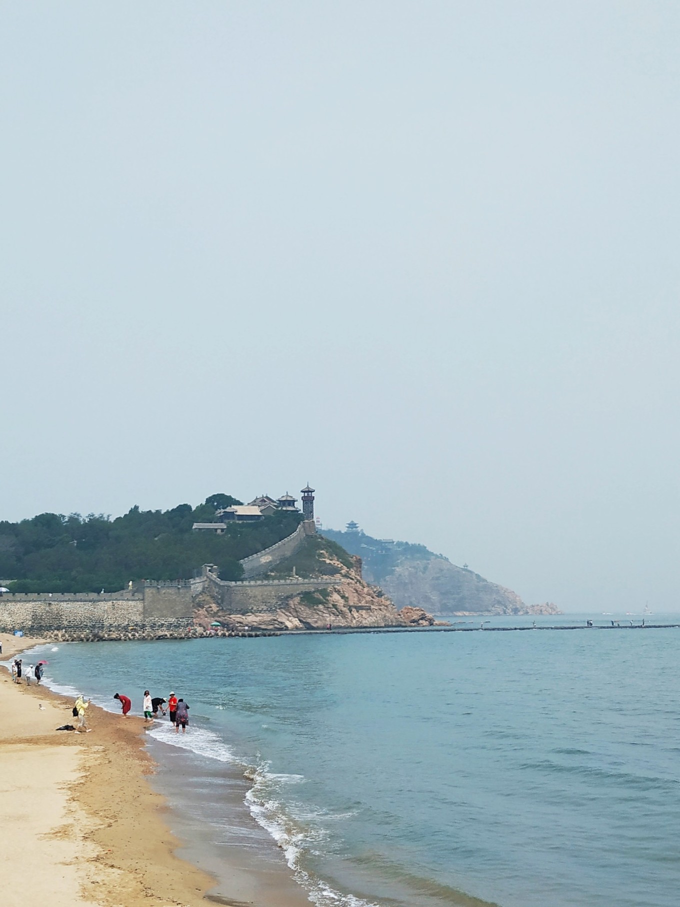 早上起來到附近的海邊小道溜達,附近有八仙過海像、蓬萊閣和三仙山,蓬蓬萊閣和三仙山和其他地方古建筑景點比較相似,且門票100+,不具備旅游價值。在海邊拍照,背景就是蓬萊閣,還有必要去嗎
