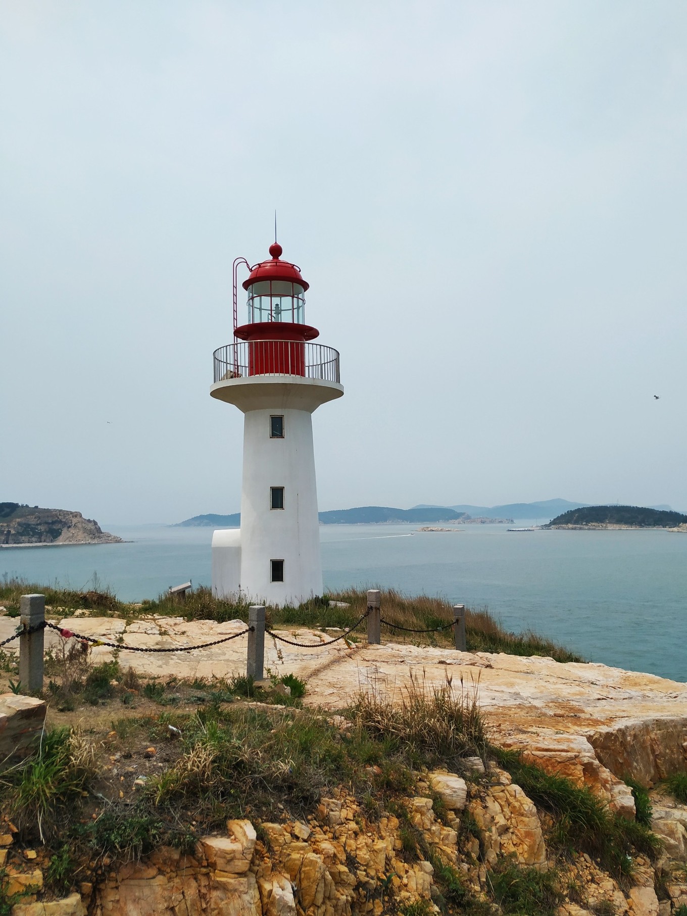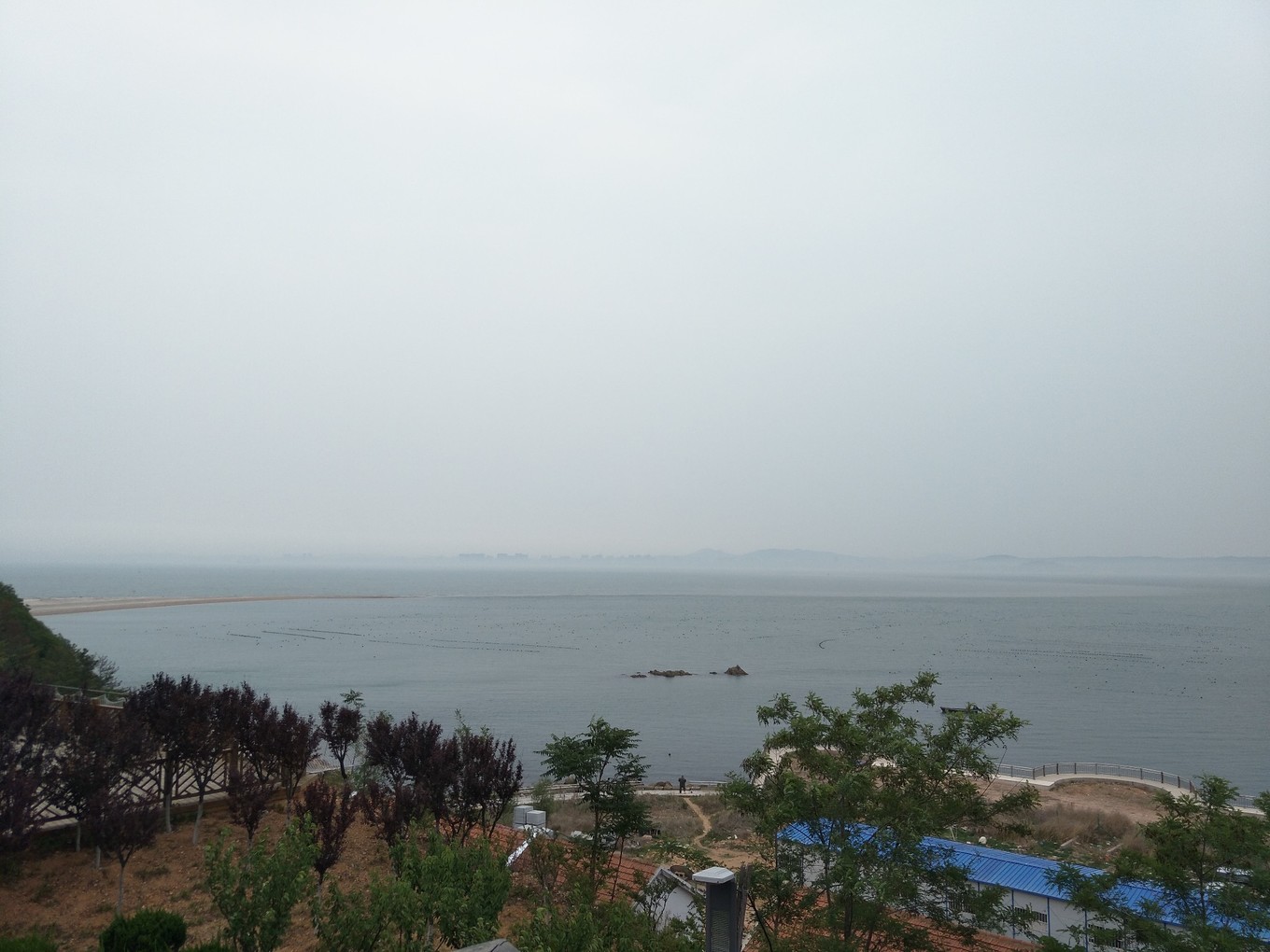 說實話這個景點,沒搞清楚咋回事,一輛福特中巴拉著大家在山上神跑(30元/人),山上停車3分鐘,讓大家拍一下長島縣的全貌,然后在海邊公路上停3分鐘,拍神龜(遠處山石頭像龜),拍獅子(遠處一塊山石頭像獅子),然后一路開到益處景點看黃渤海分界線,此景點不懼旅游價值。游完仙境緣后我們返航至蓬萊港,導游比較負責,安排客車師傅把我們送到酒店。