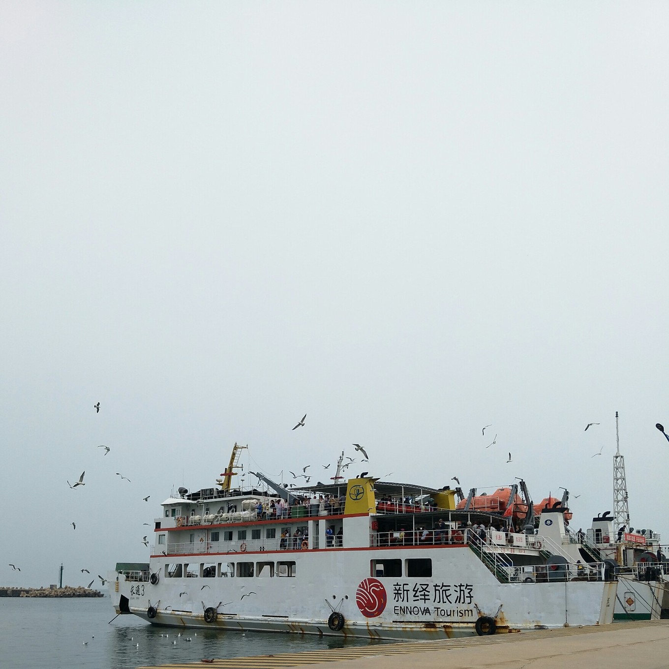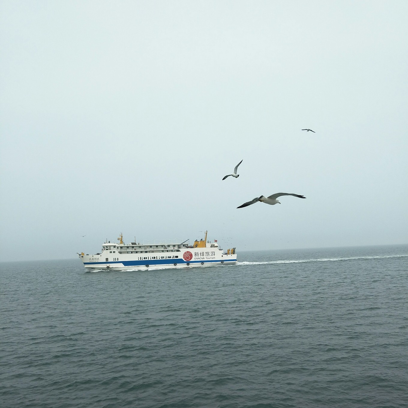 輪渡去長島,一路海鷗長島四面環(huán)海,距離蓬萊海邊不是很遠,但是輪渡還是需要坐45分鐘左右。長島一共有大大小小島嶼30多處,其中20多處尚未開發(fā),島上人主要居住在南島,縣政府、醫(yī)院都在南島,北島基礎(chǔ)設(shè)施不是很高,生病了相對費勁。輪渡發(fā)動后,會有成群的海鷗伴著輪渡前行,他們知道會有乘客給他們喂食,應該是他們自己總結(jié)出的經(jīng)驗吧。