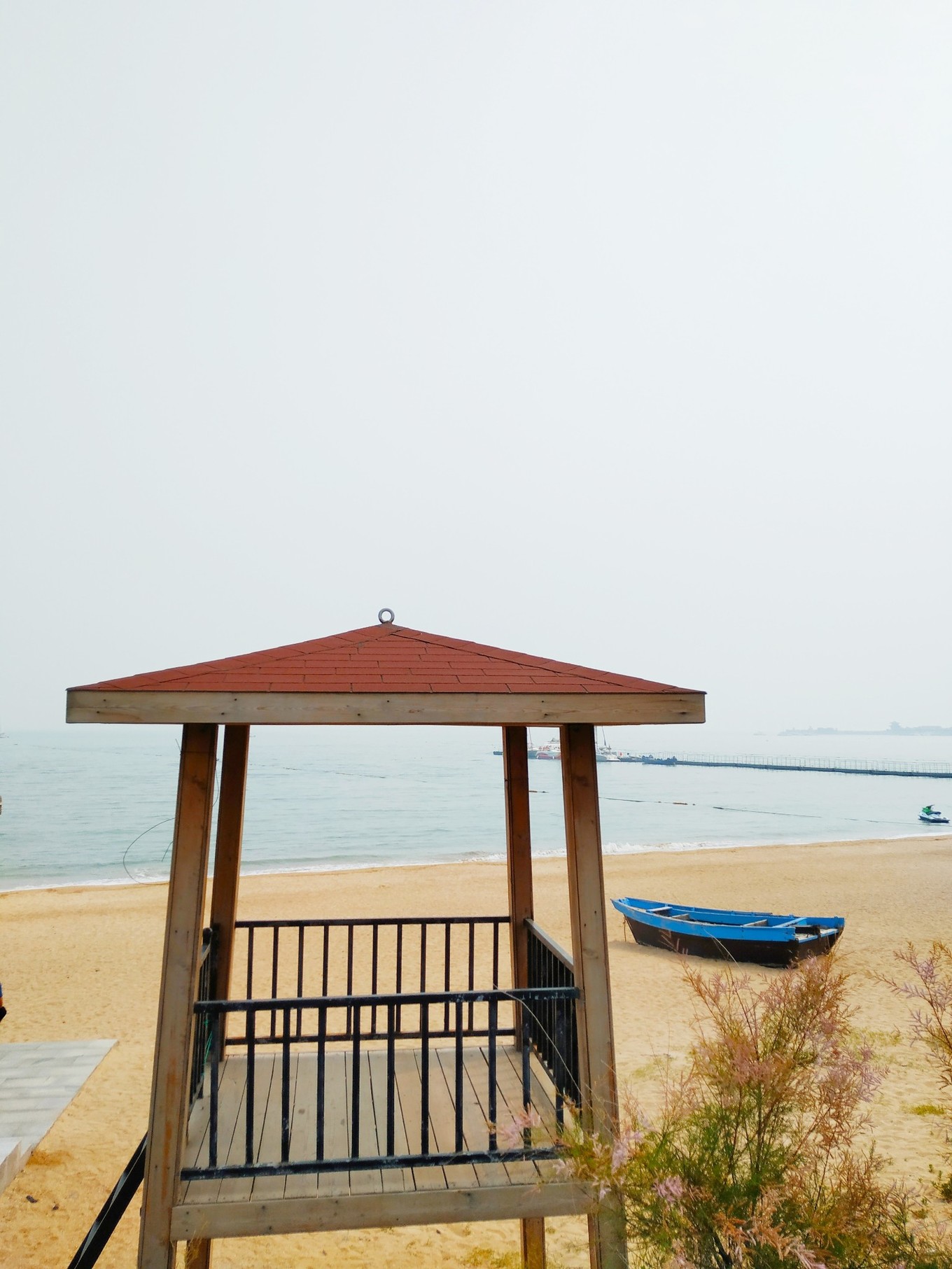 下圖,海灘浴場瞭望塔,確保游泳者的安全。