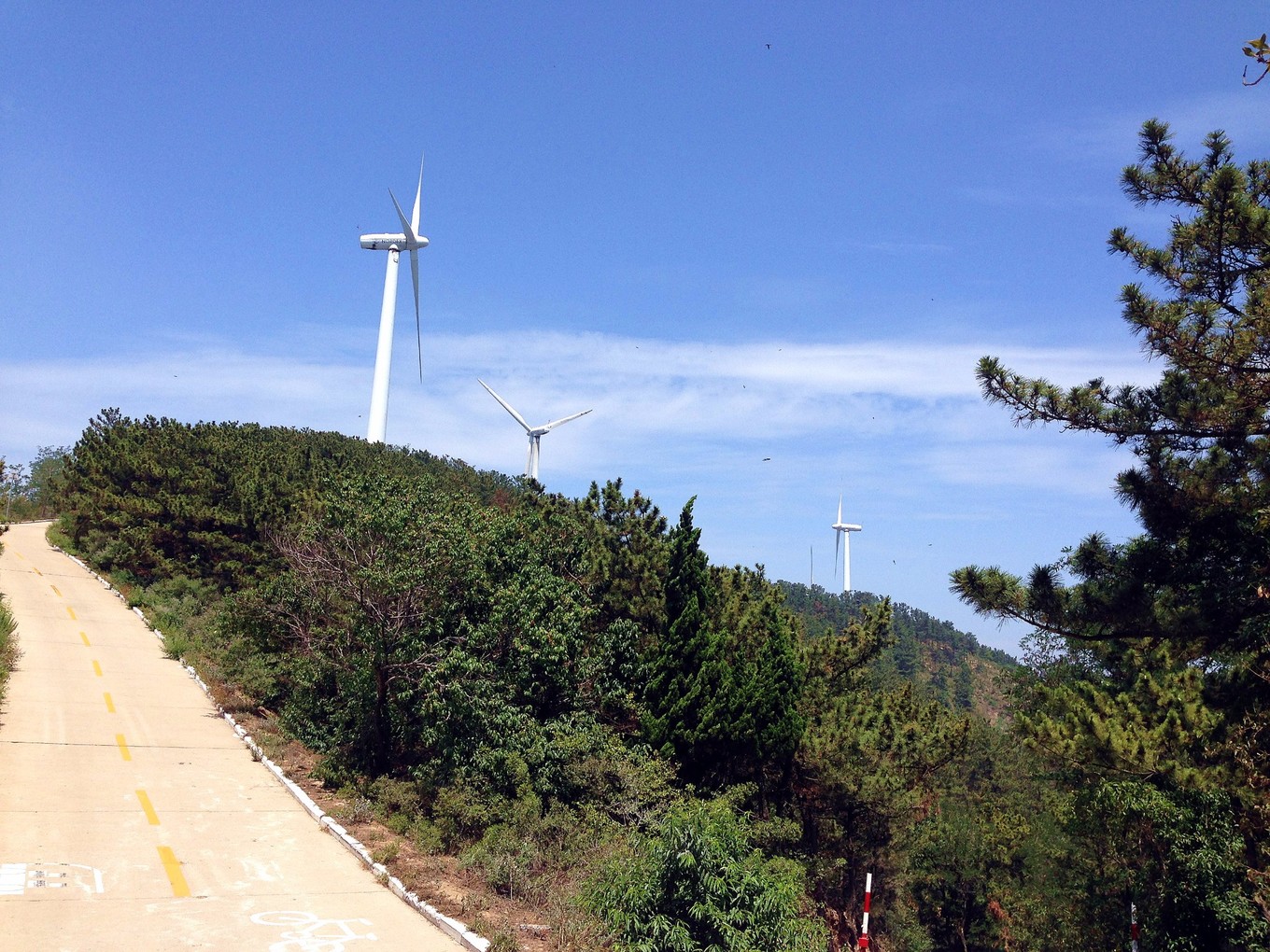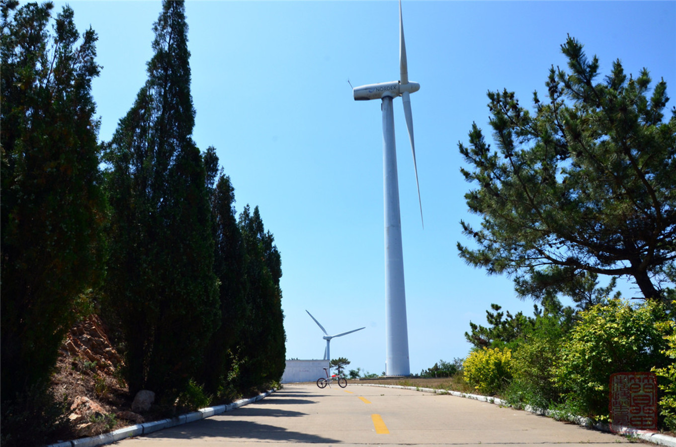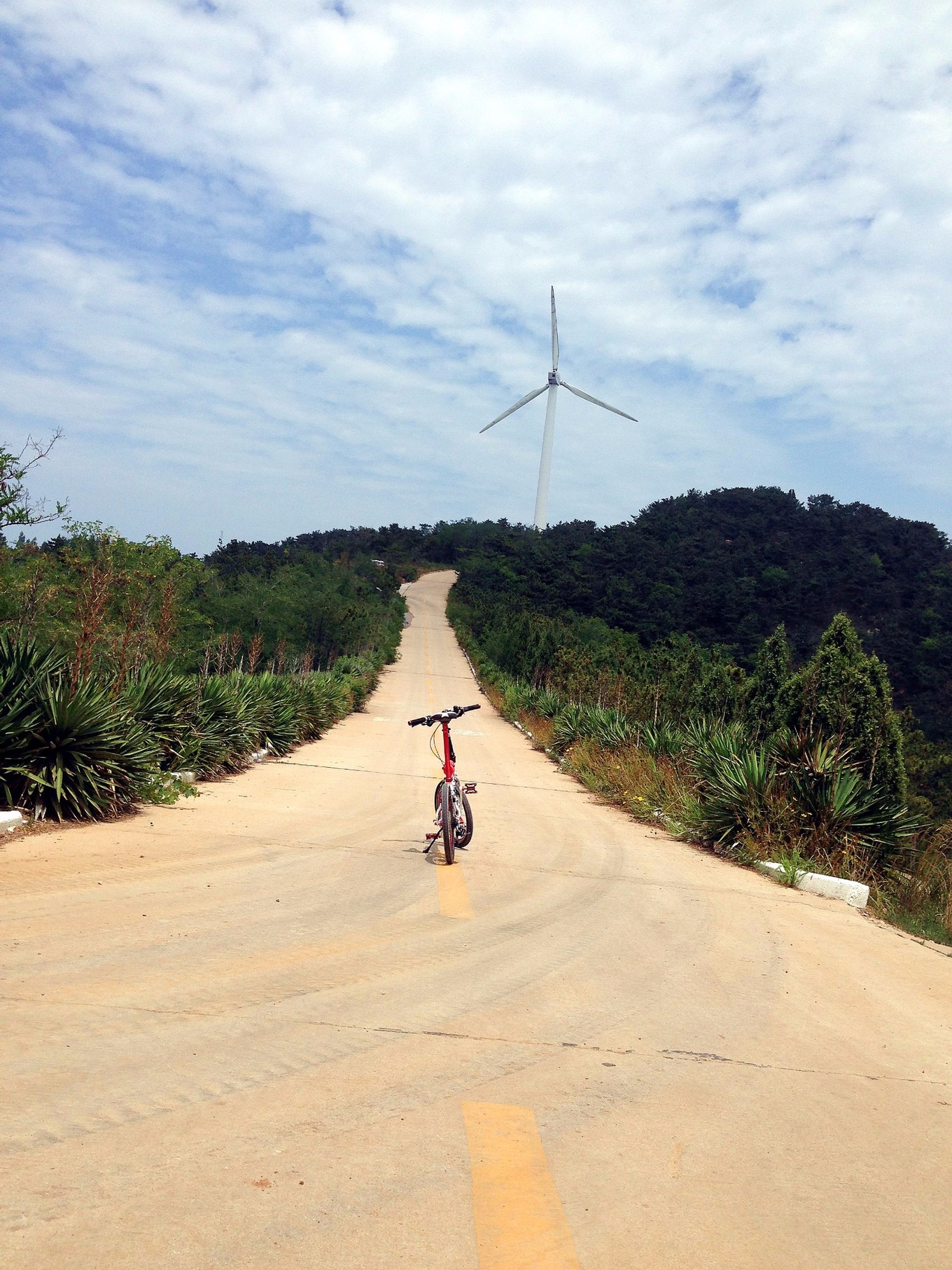 騎行綠道附近的騎行環(huán)境很好,很安全,到了風(fēng)車路也不錯(cuò),全是水泥路,偶爾有游客開車在山脊轉(zhuǎn)悠,注意不要速度太快就行。山后的一段路是正在修建當(dāng)中,估計(jì)修好了也是平坦的水泥路。
