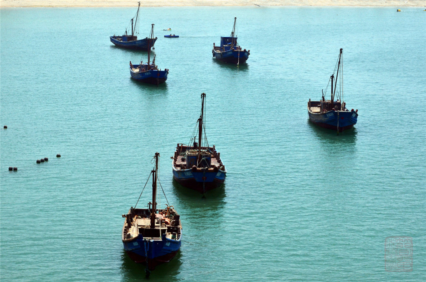 海島的漁船碼頭在北長山島的入口處,海港里停泊的漁船也是一道美麗的風(fēng)景線。。。