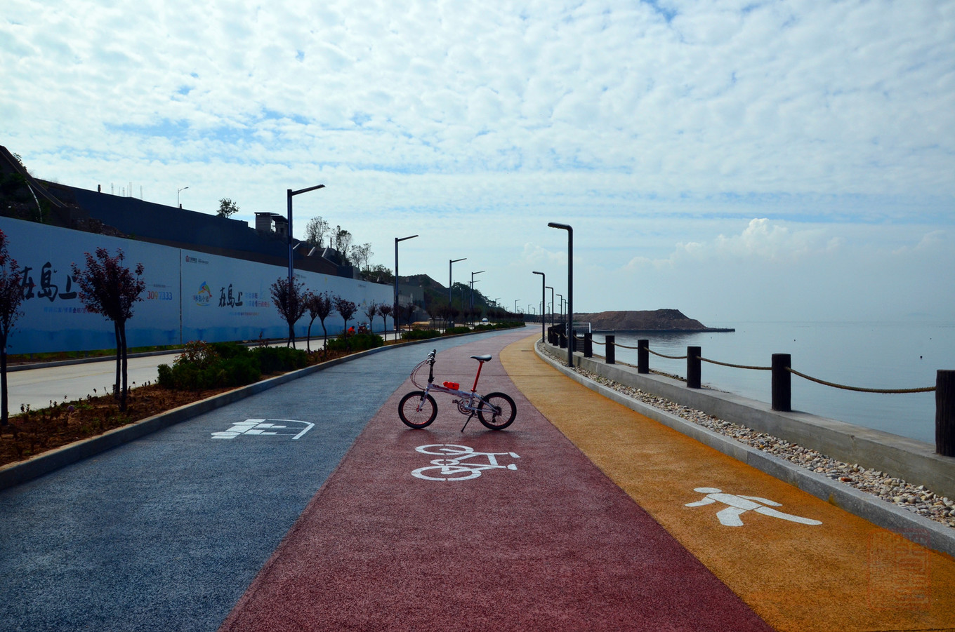 這里就是我此行的重點(diǎn),長島旅游景區(qū)正在修環(huán)島騎行綠道,這可是我們單車愛好者的一大福音啊,,,騎行與綠道,一邊是大海一邊是大山,真是很愜意啊,,,