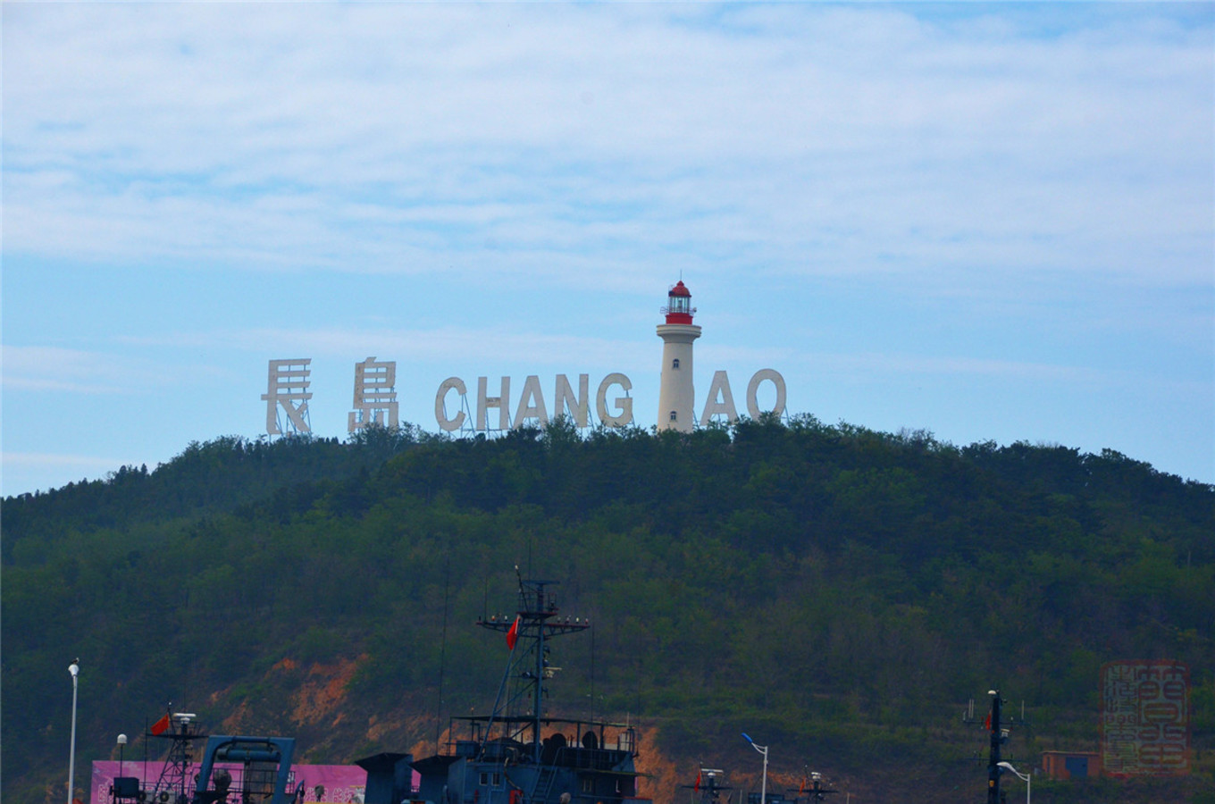 終于到達(dá)長島,遠(yuǎn)望燈塔山,長島字樣非常醒目,,,