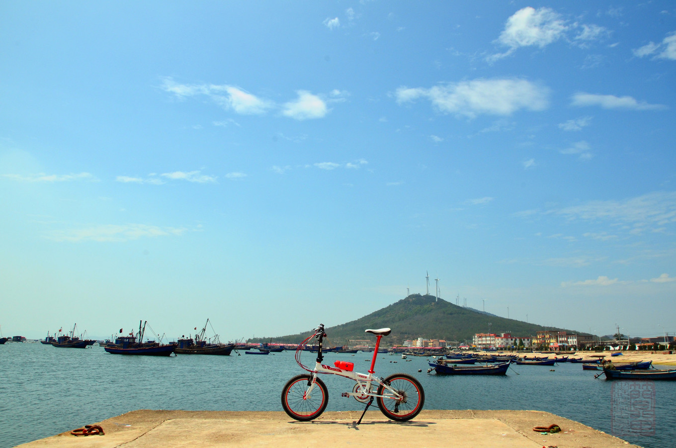 下船了,在長島港拍個(gè)照,這是我此次騎車環(huán)島的起點(diǎn)!沒錯(cuò),我是來騎車環(huán)島的,帶的是大行折疊車,旅行方便攜帶,,,