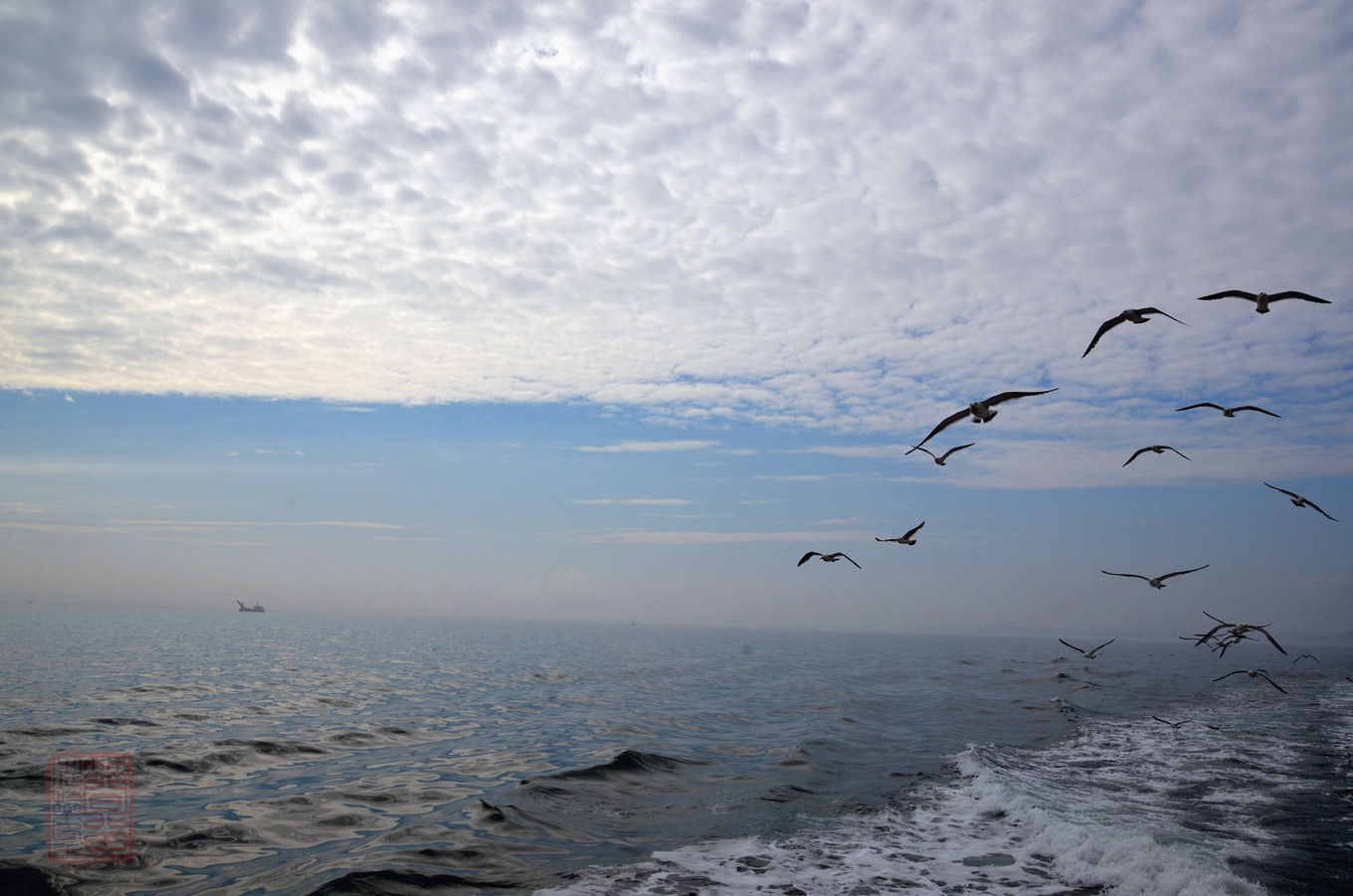 去的時(shí)候是蓬萊港的海鷗,,,來的時(shí)候是長島港的海鷗,,種群不一樣,,