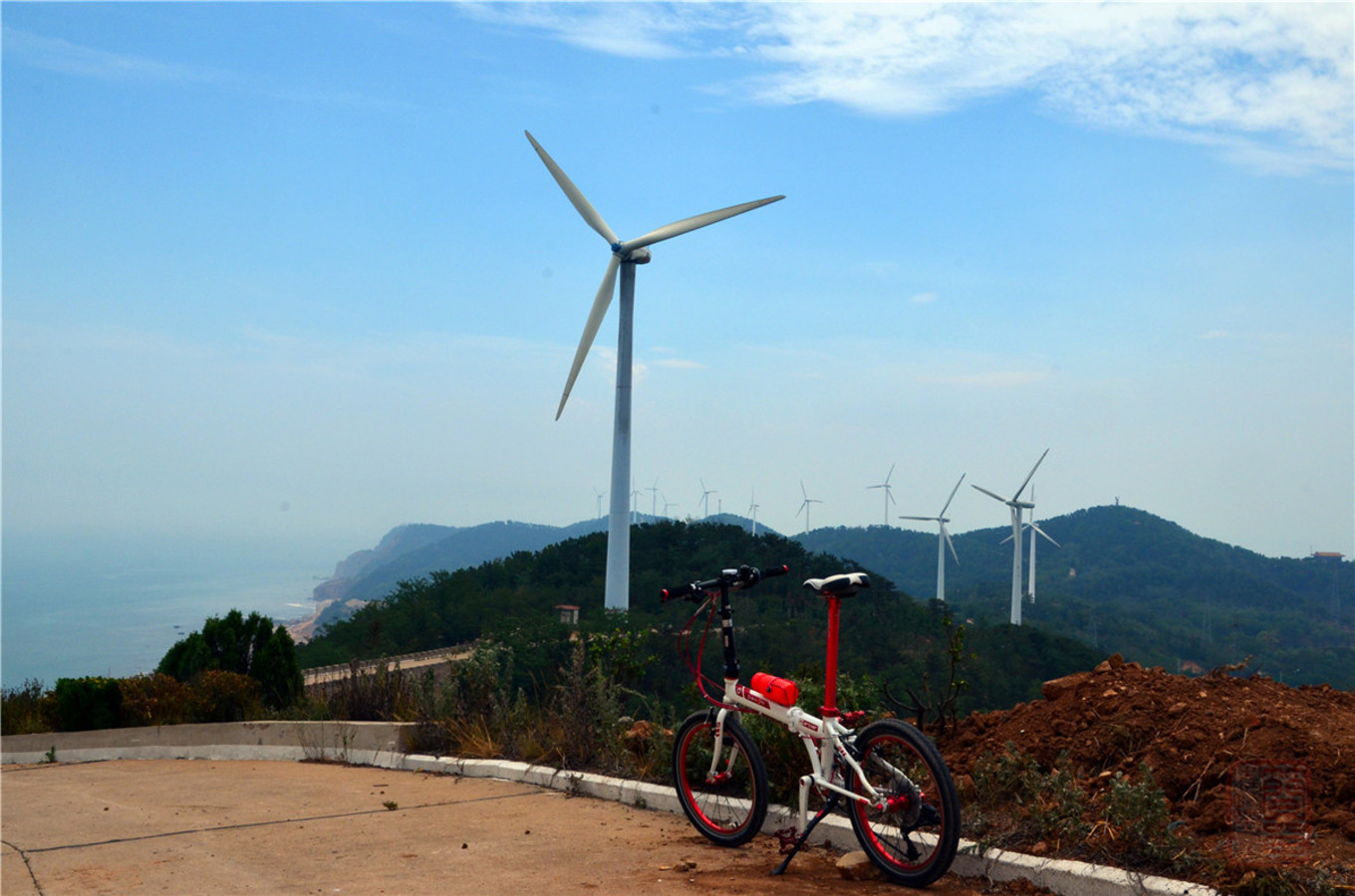 騎過了綠道,我就開始騎行峰山上的風(fēng)車路,,,長島的風(fēng)力發(fā)電用的 風(fēng)車是長島的一條風(fēng)景線,這條風(fēng)車路貫穿長島的南北長山的山脊,,,非常壯觀,非常漂亮,,,