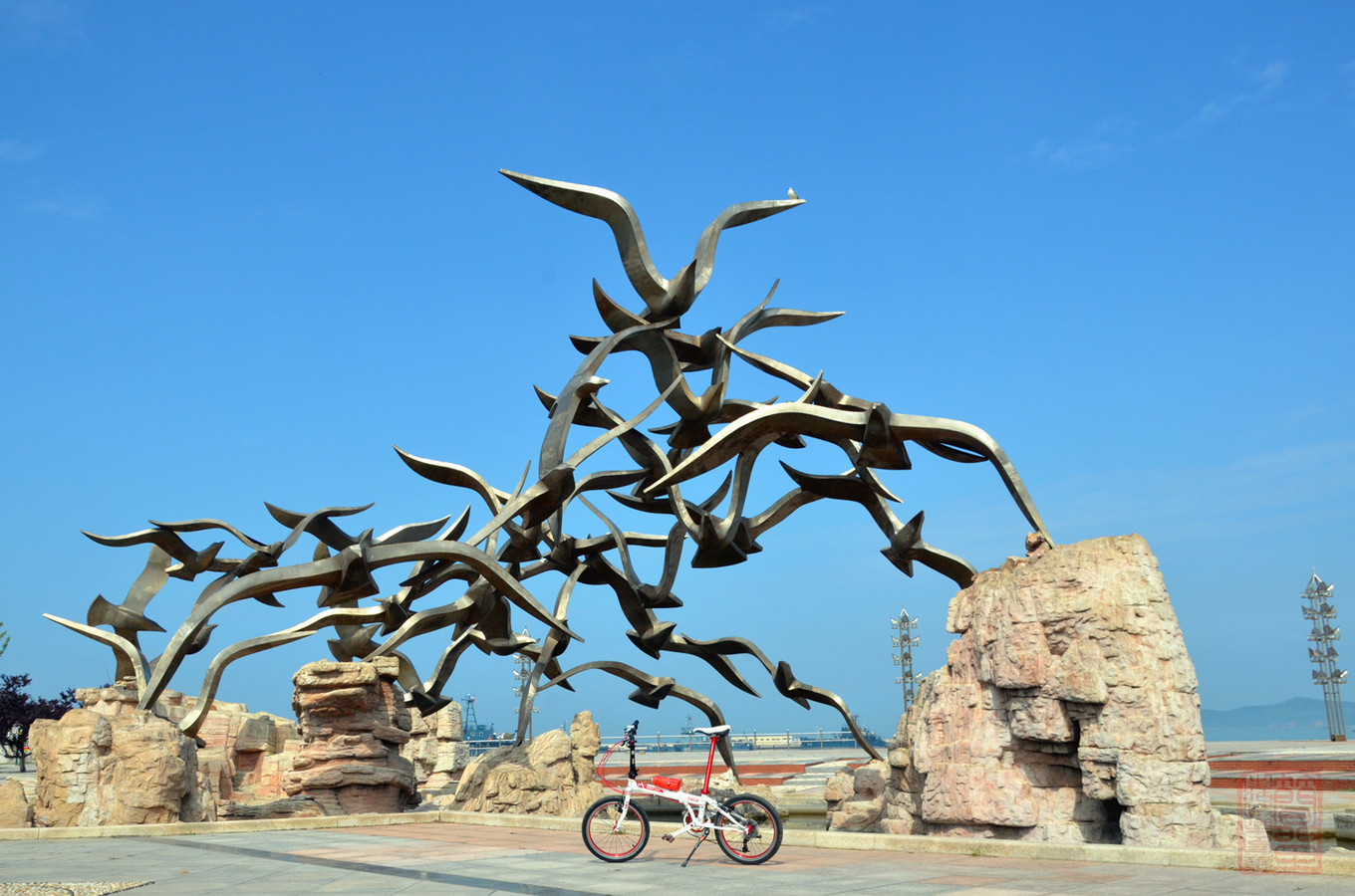 軍港前面的經(jīng)典標(biāo)志性雕塑,不銹鋼海鷗群,,,哈哈哈哈說的很通俗寫實(shí),,,后面的軍艦不敢隨意對著鏡頭,怕被懷疑,,你們懂的,,,