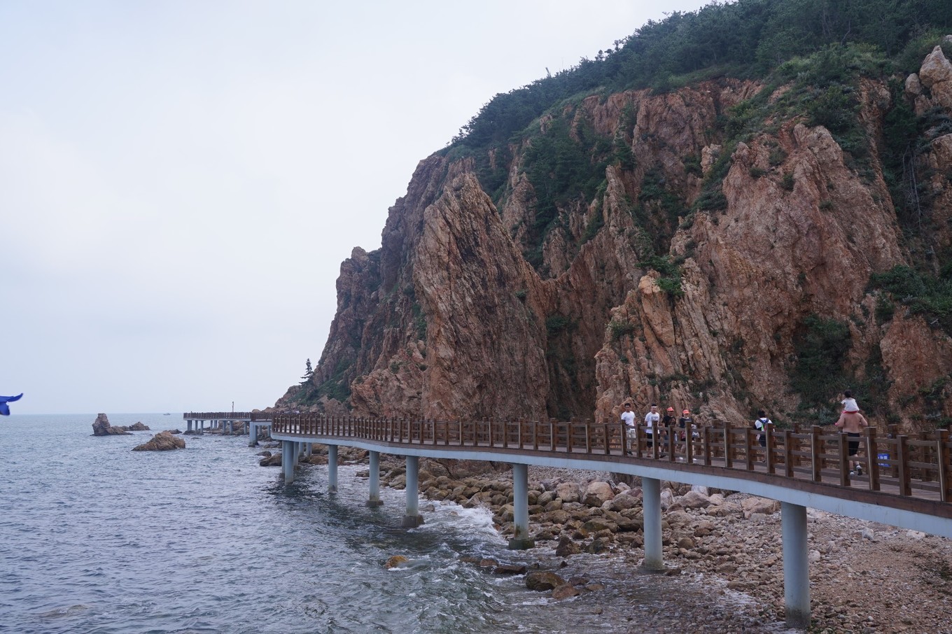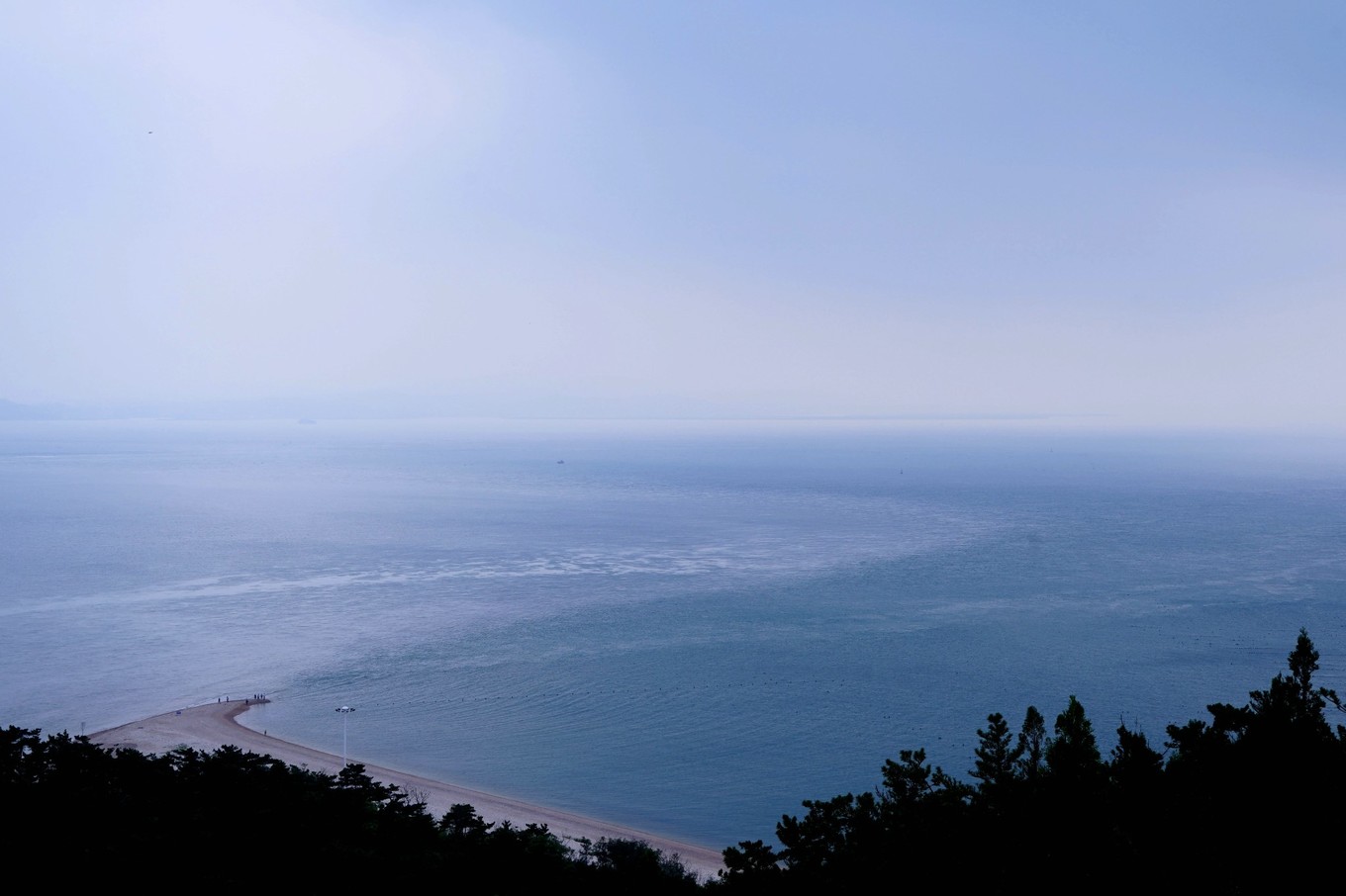 林海公園最著名的是黃渤海分界線,黃渤兩海在這里交融,顏色深淺不同,黃海是深藍(lán) 色,渤海成淡黃色,分界線成S型,成為自然界一大奇觀。